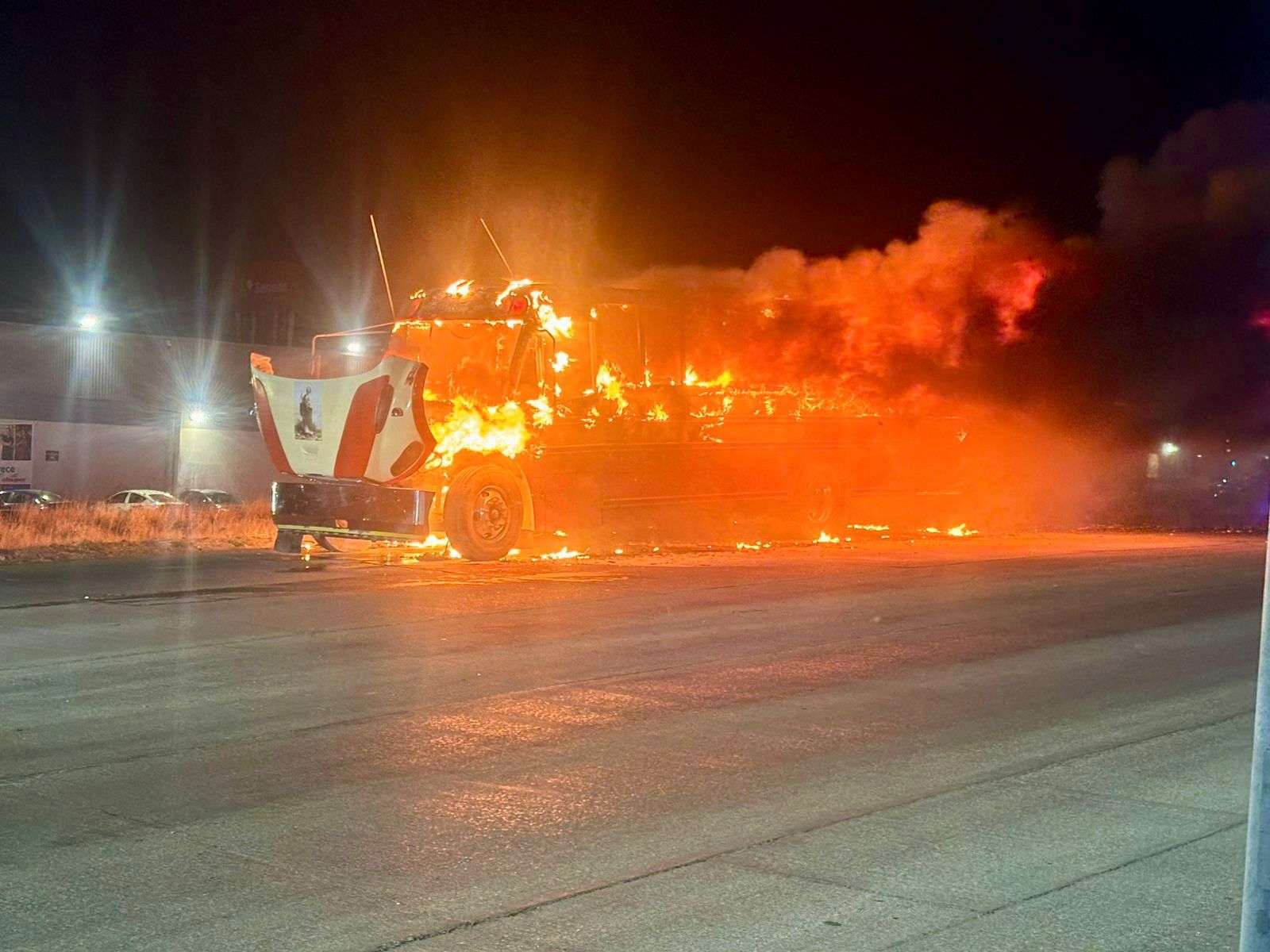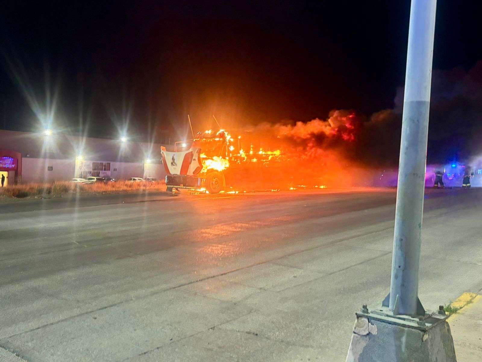 Chihuahua, Chih.- Un camión de transporte de personal fue consumido por las llamas luego de que se registrara un cortocircuito en el sistema eléctrico, el cual hizo contacto con el combustible.