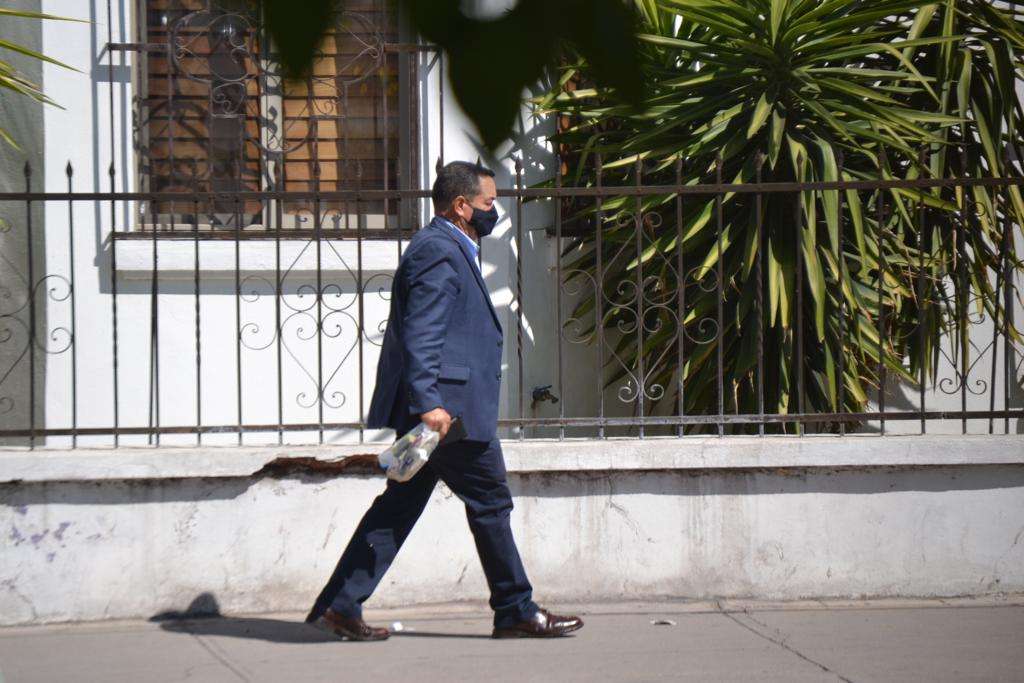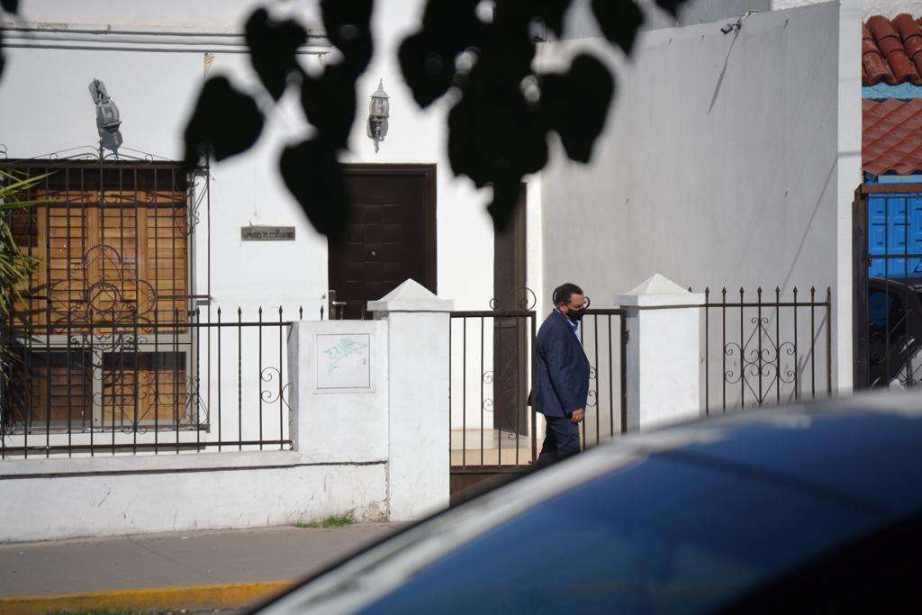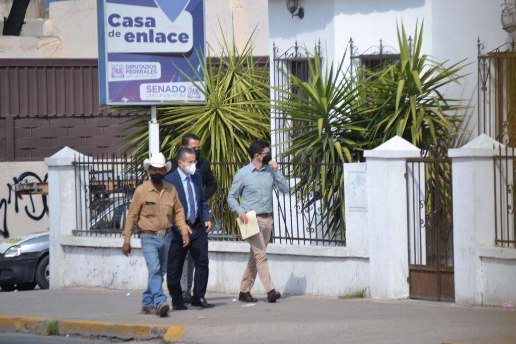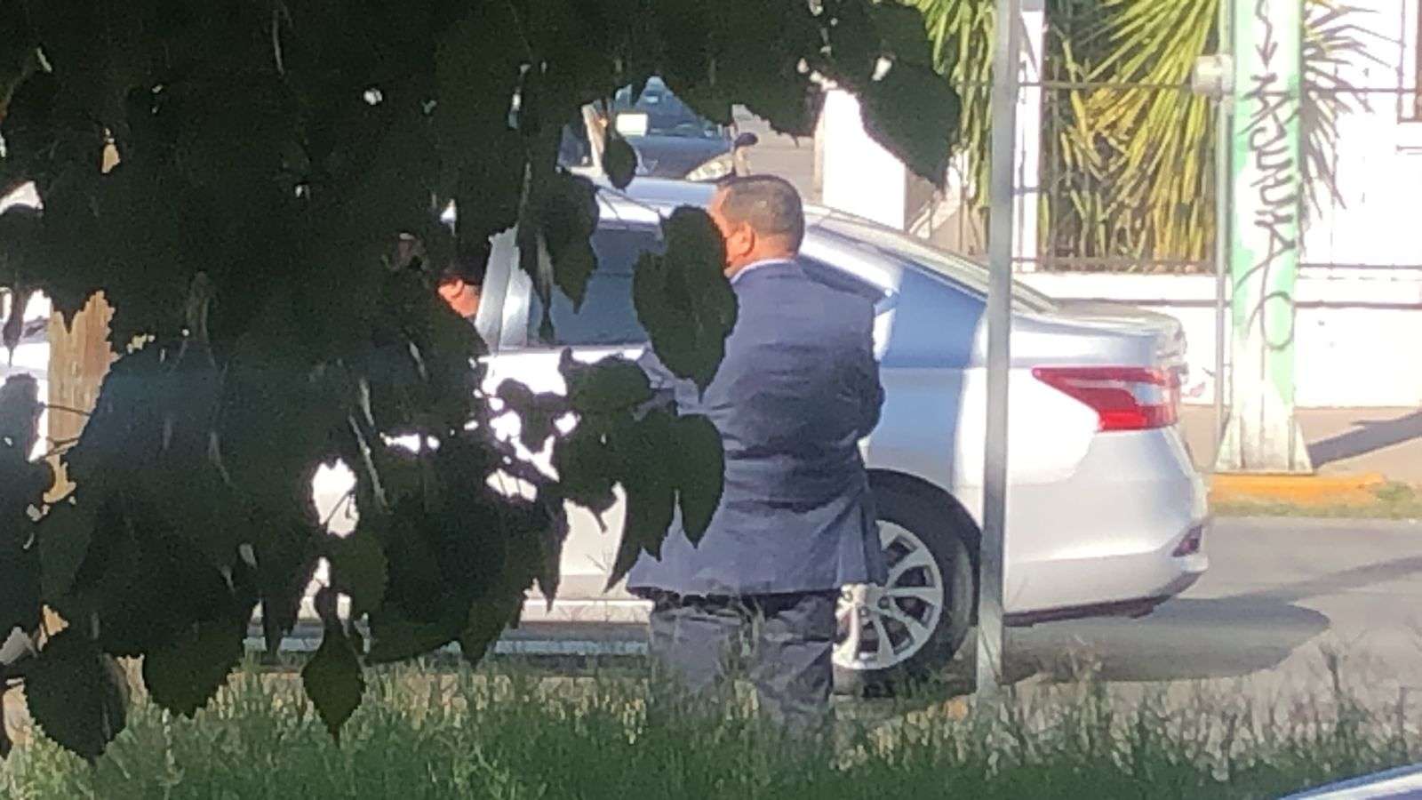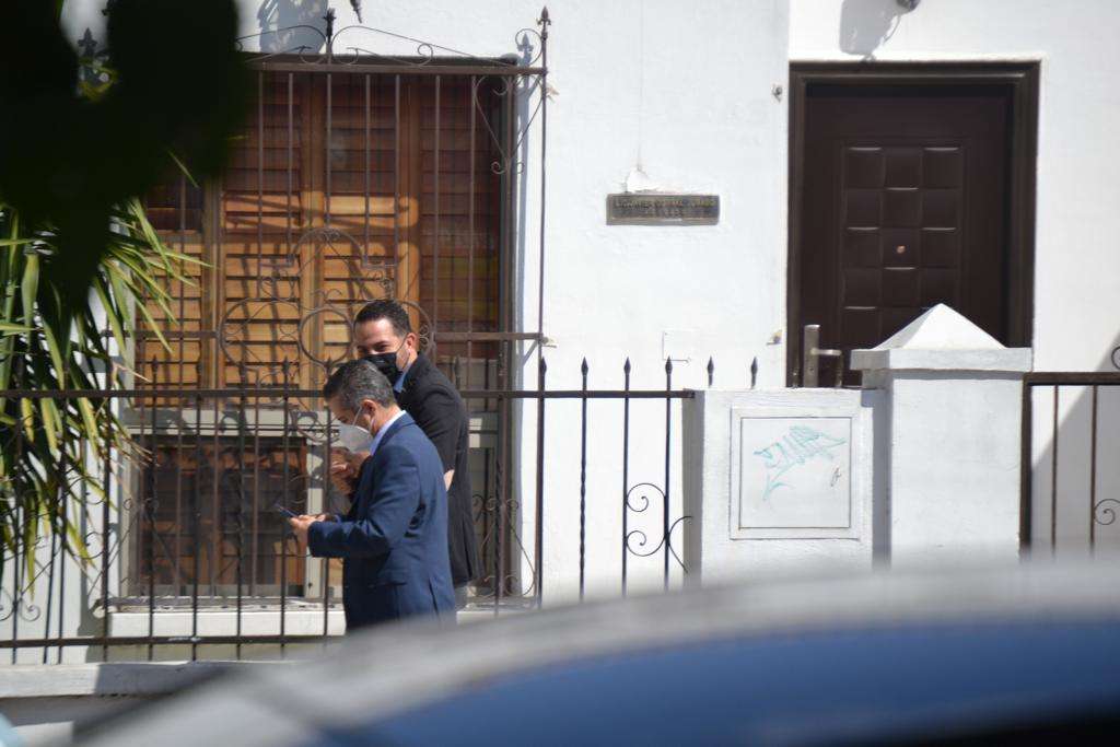 Encorbatados dos de ellos, embozados con el tapabocas, miraron para todos lados antes de entrar a la oficina del Exgobernador.