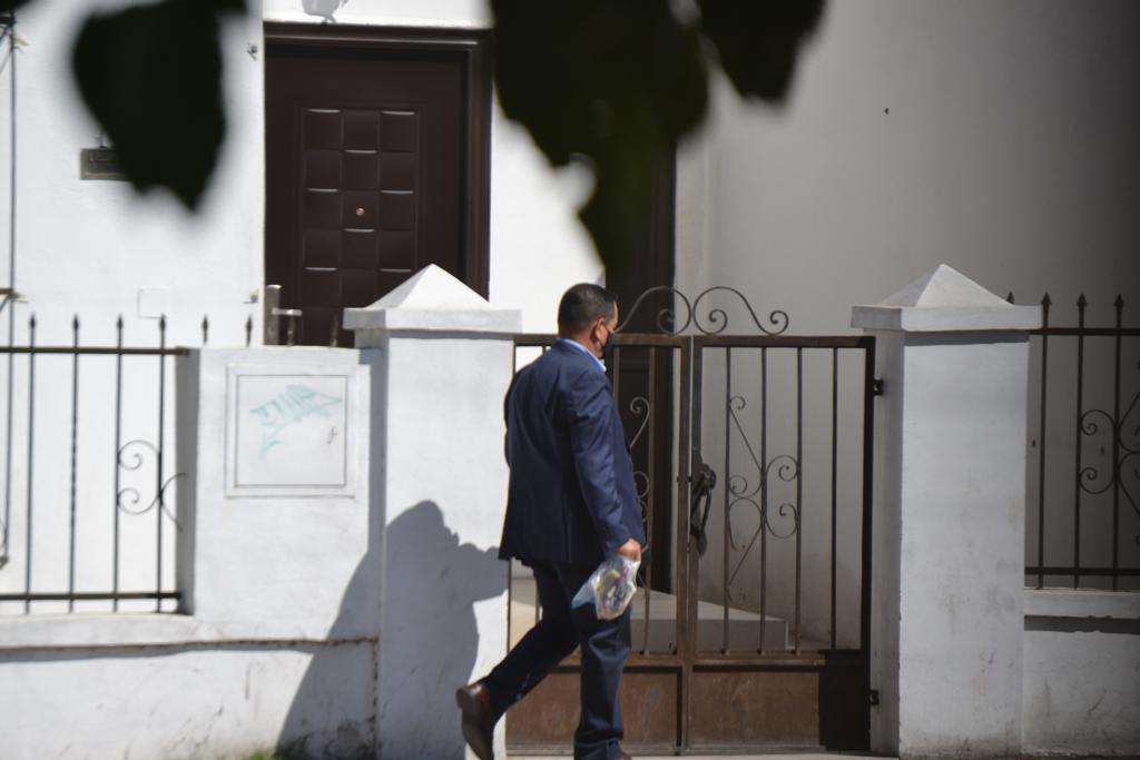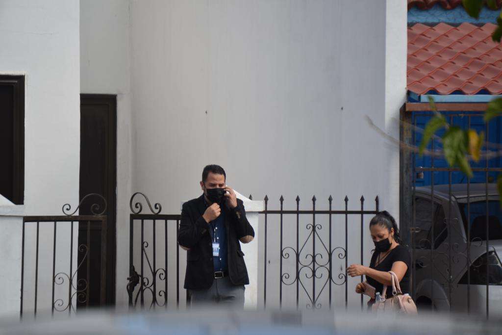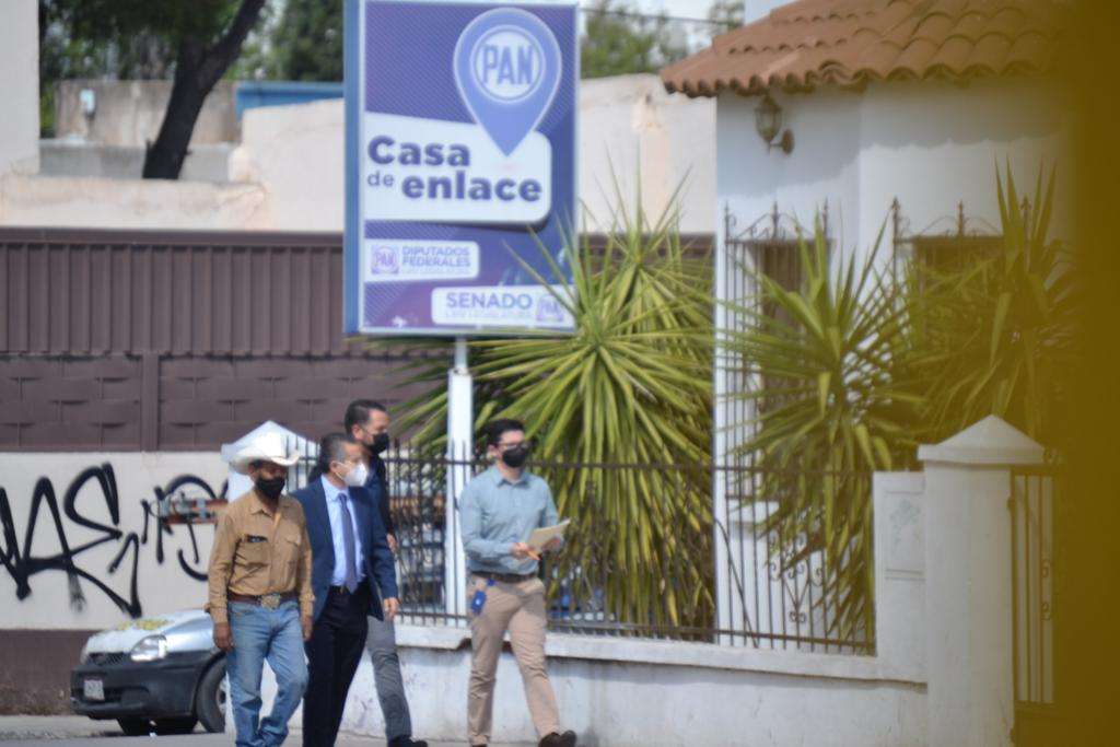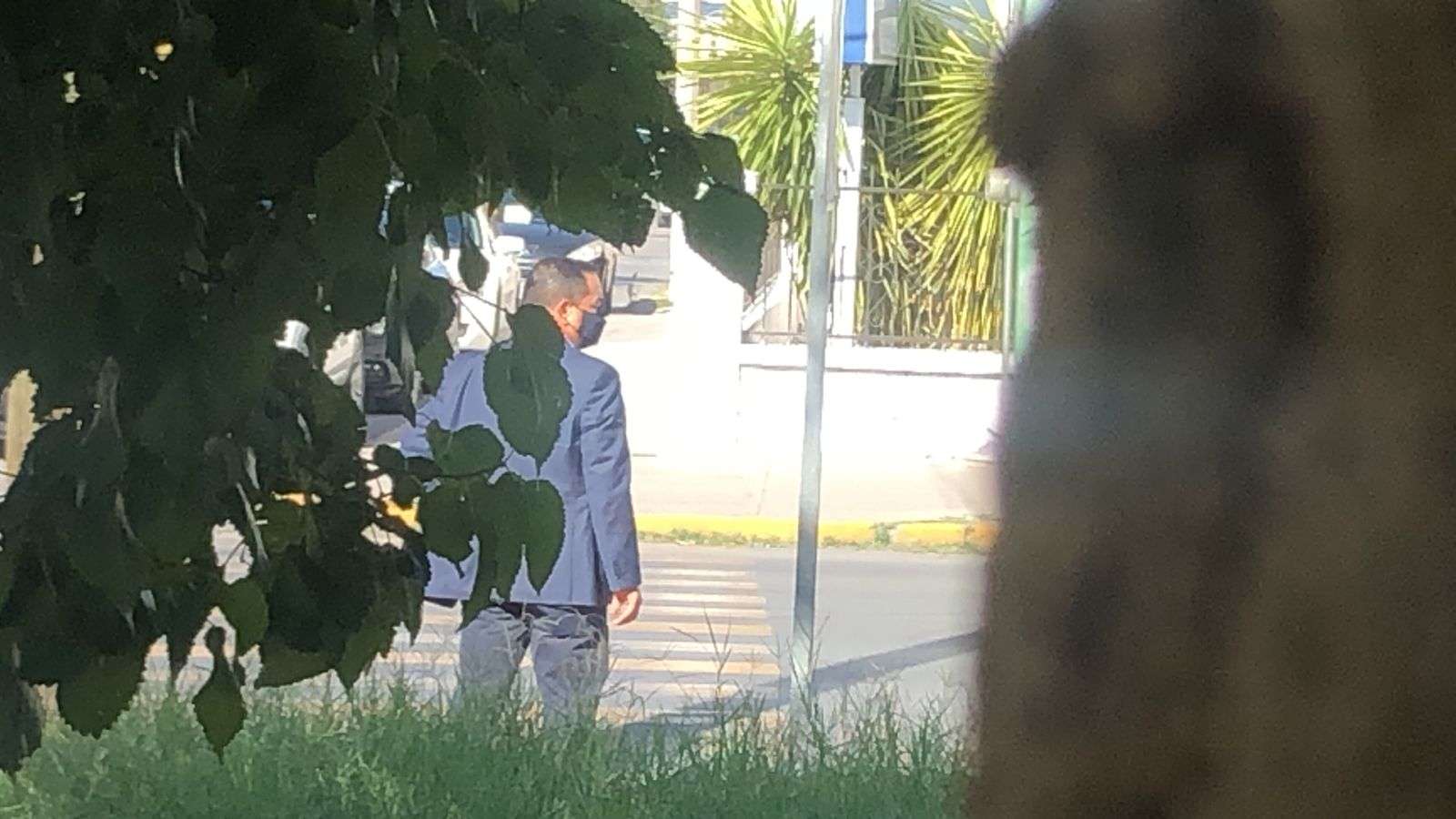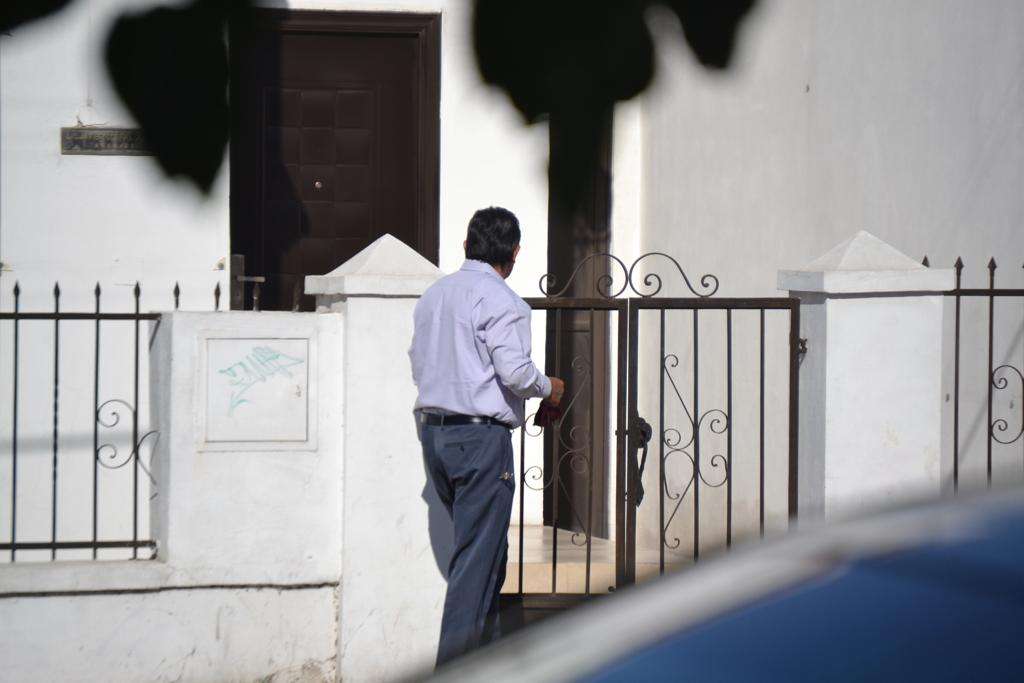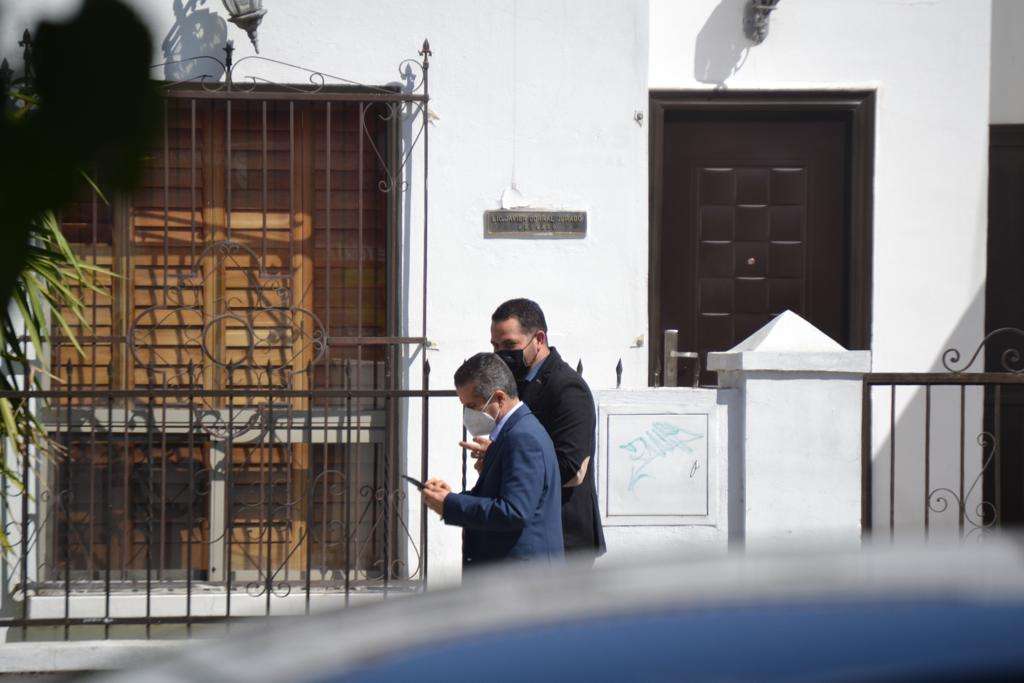 Encorbatados dos de ellos, embozados con el tapabocas, miraron para todos lados antes de entrar a la oficina del Exgobernador.