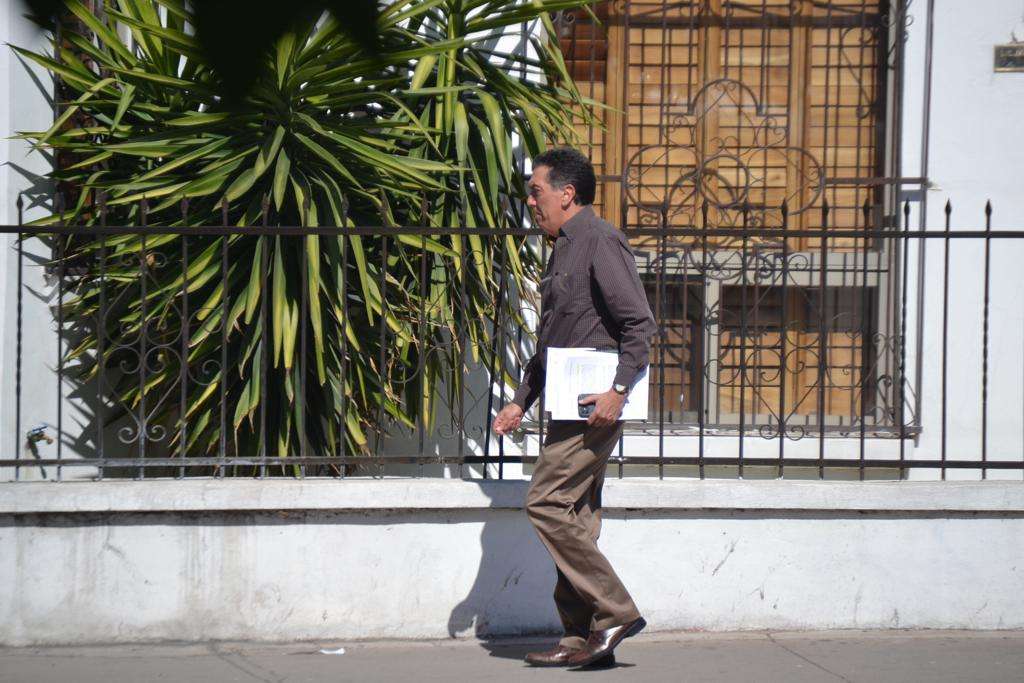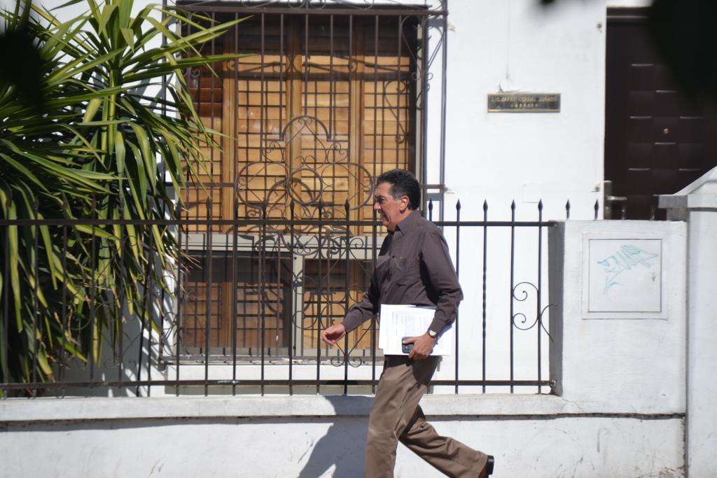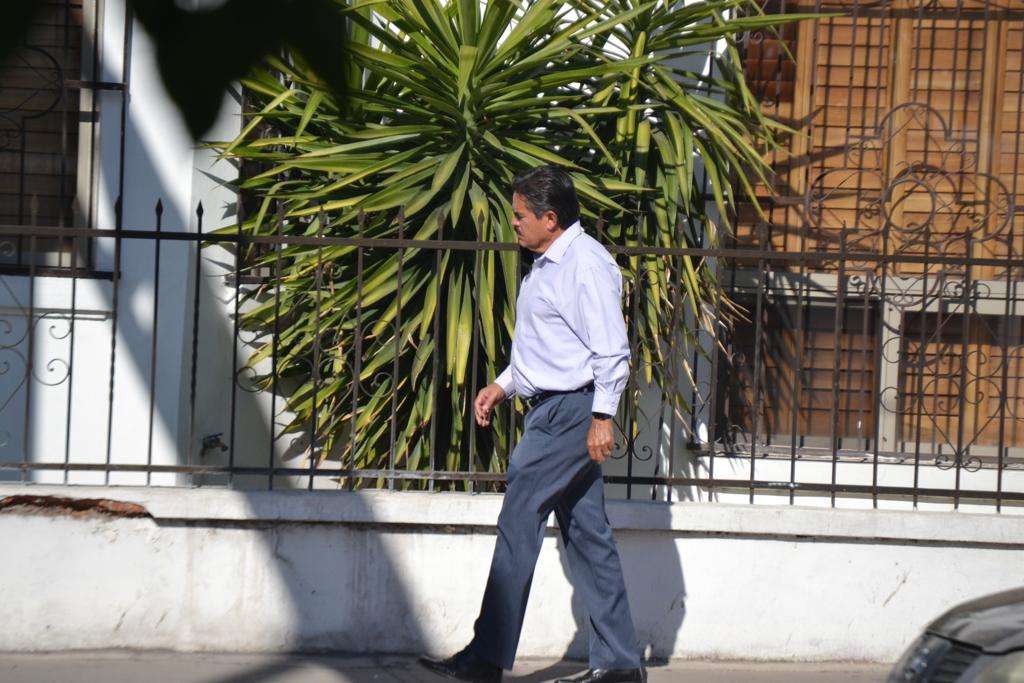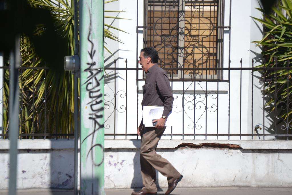 Con camisa y pantalón de color café, hojas oficiales bajo el brazo y cabizbajo, encorvado y lento, reflejaba la fiel imagen del fracaso. No levantó un momento la mirada; parecía la silueta de un reo.