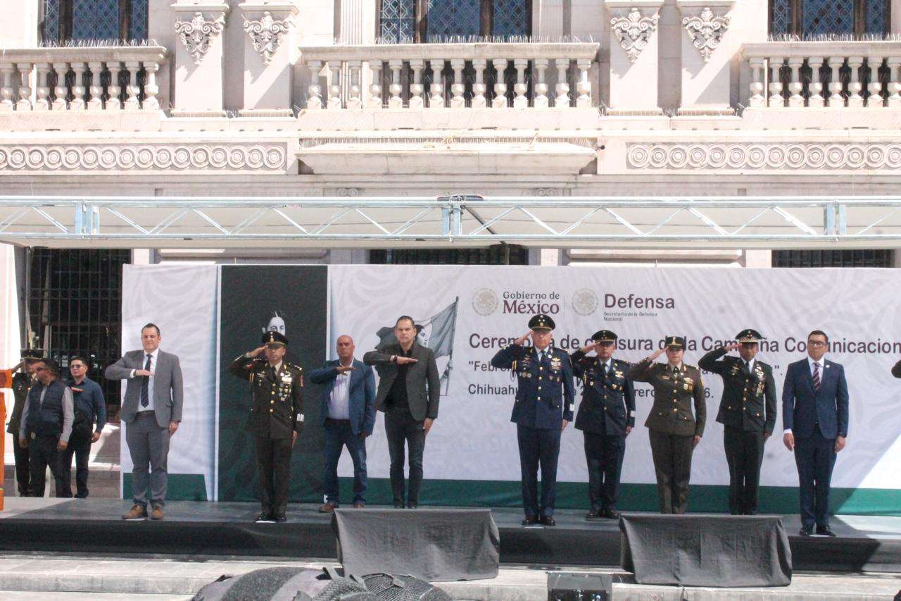 Chihuahua.- En un acto que reafirmó el vínculo indisoluble entre las fuerzas armadas y la sociedad civil, se llevó a cabo la ceremonia de clausura de la campaña comunicacional "Febrero, Mes del Ejército y Fuerza Aérea Mexicanos".