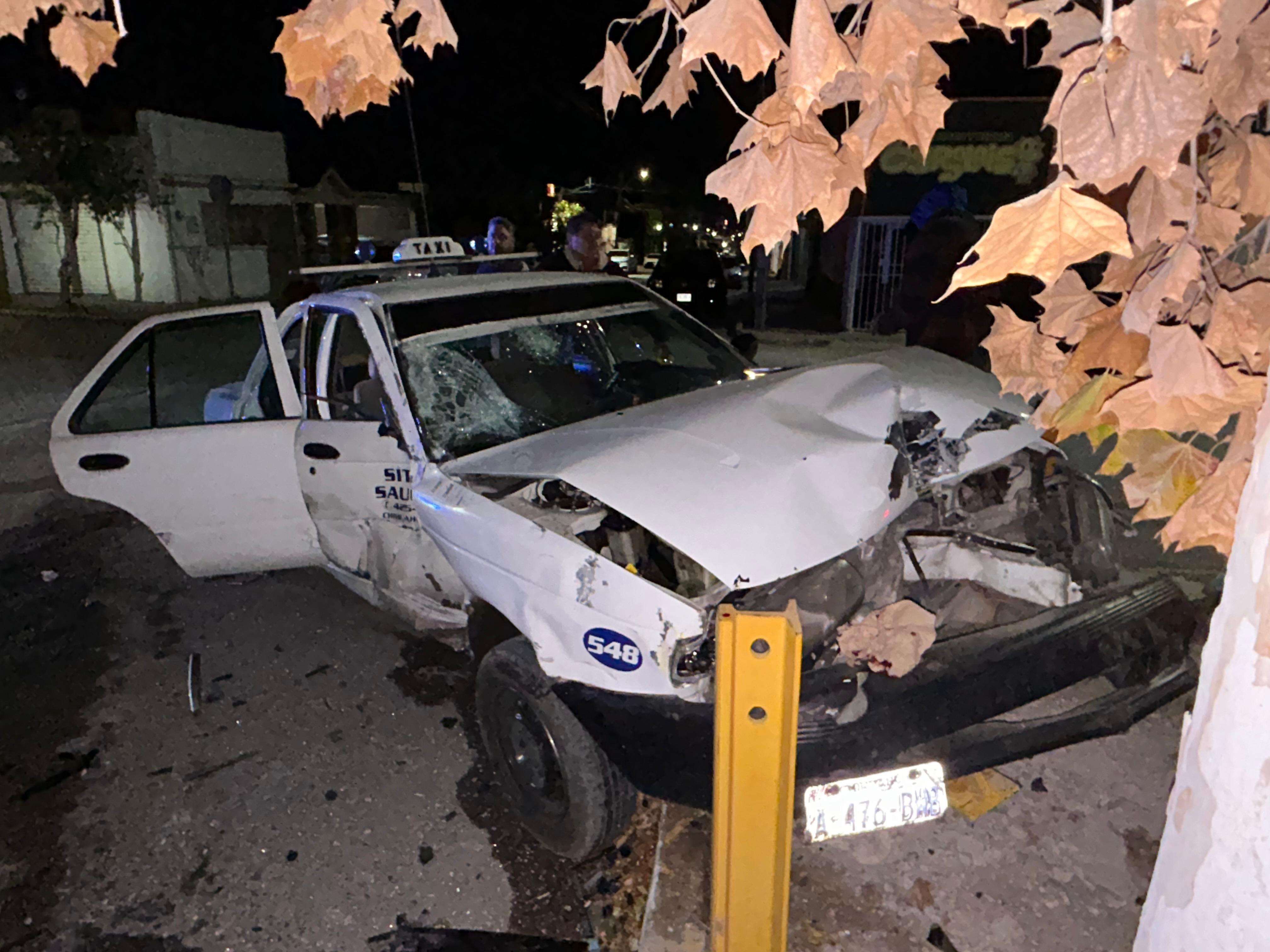 Cabe señalar que el conductor del taxi presentó diversos golpes y se quejaba de dolor en la espalda y las piernas tras la colisión.