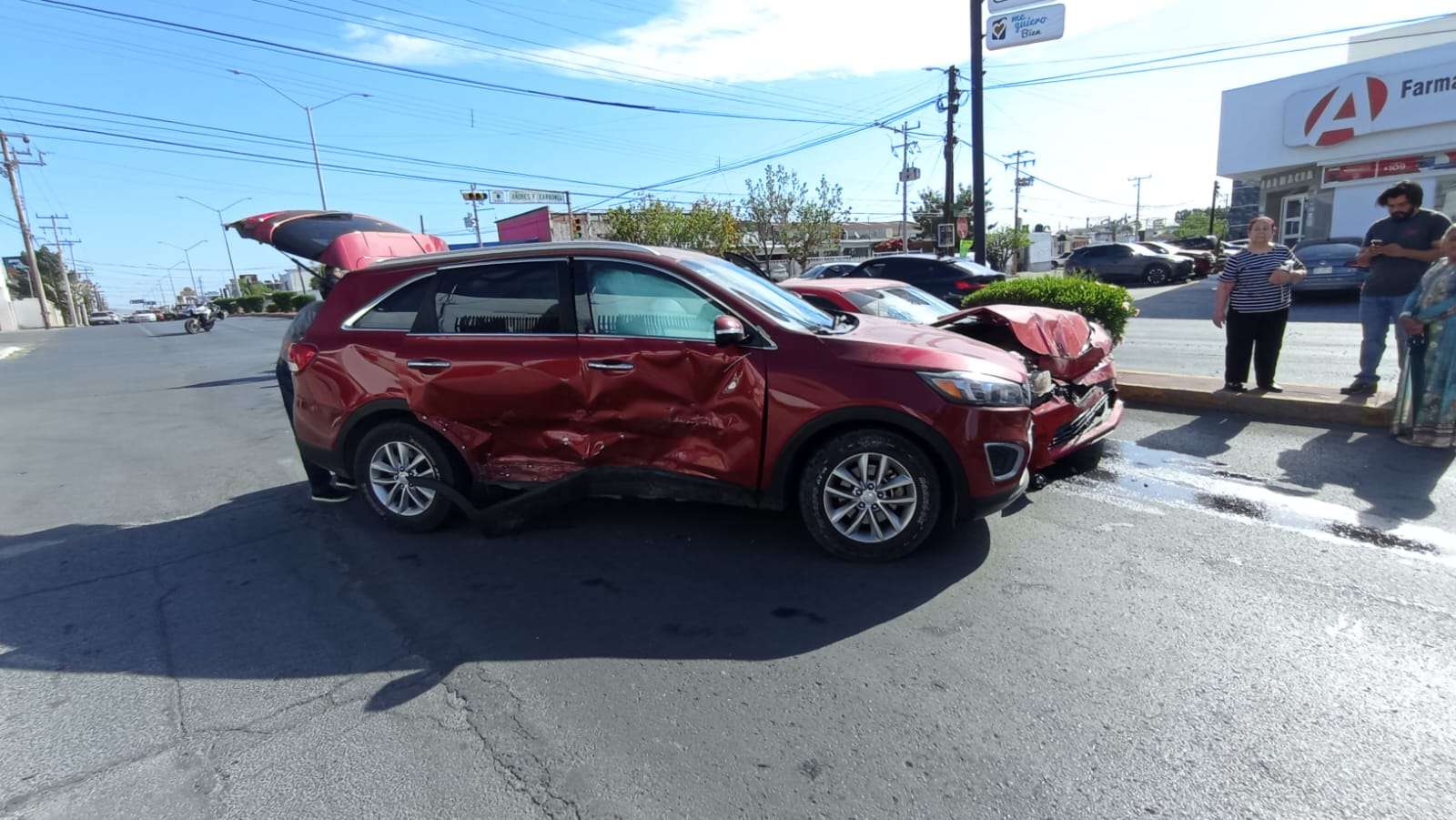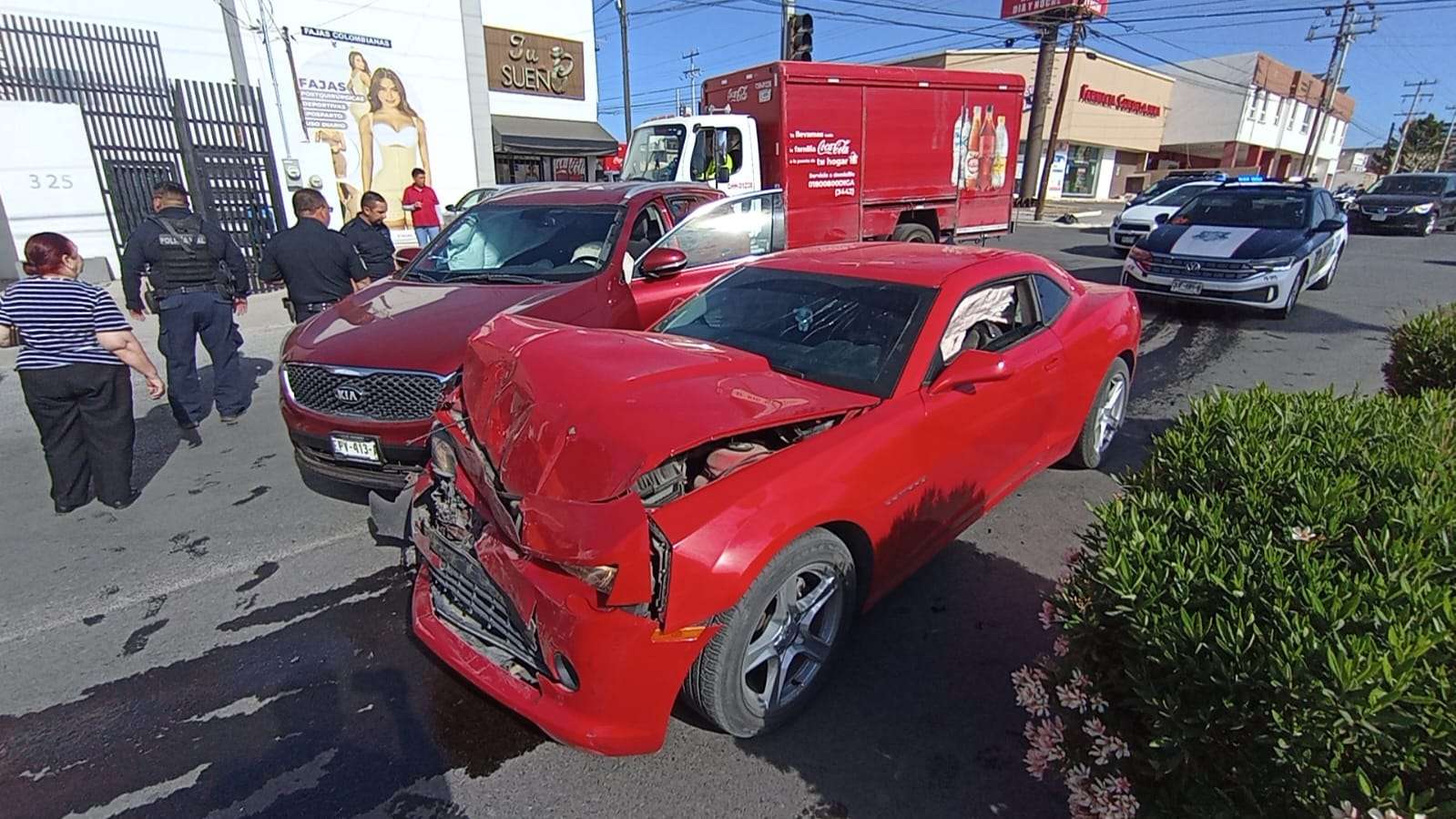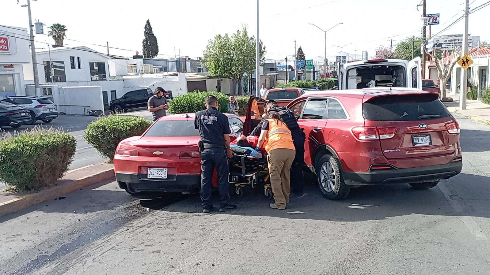 De acuerdo con el reporte, el Camaro circulaba en sentido de norte a sur y, al llegar al cruce con la calle Carbonel, no respetó la preferencia de paso e impactó en el costado derecho a una camioneta Kia Sorento, cuya conductora contaba con paso libre.