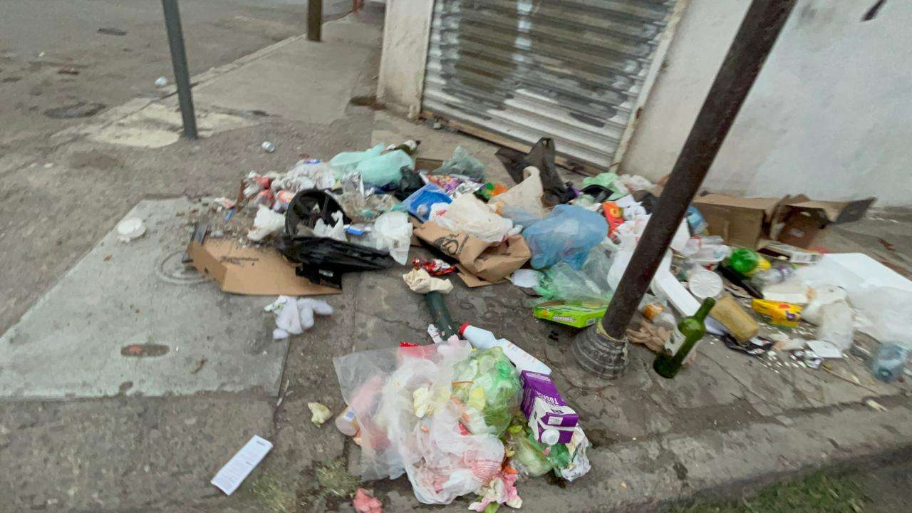 Uno de estos días hasta una lavadora repleta de desechos se encontraba donde esta mañana, se encontraba un montón de basura regada por toda la banqueta en el cruce de las calles Angel Trias y calle 5a en el centro de la ciudad.
