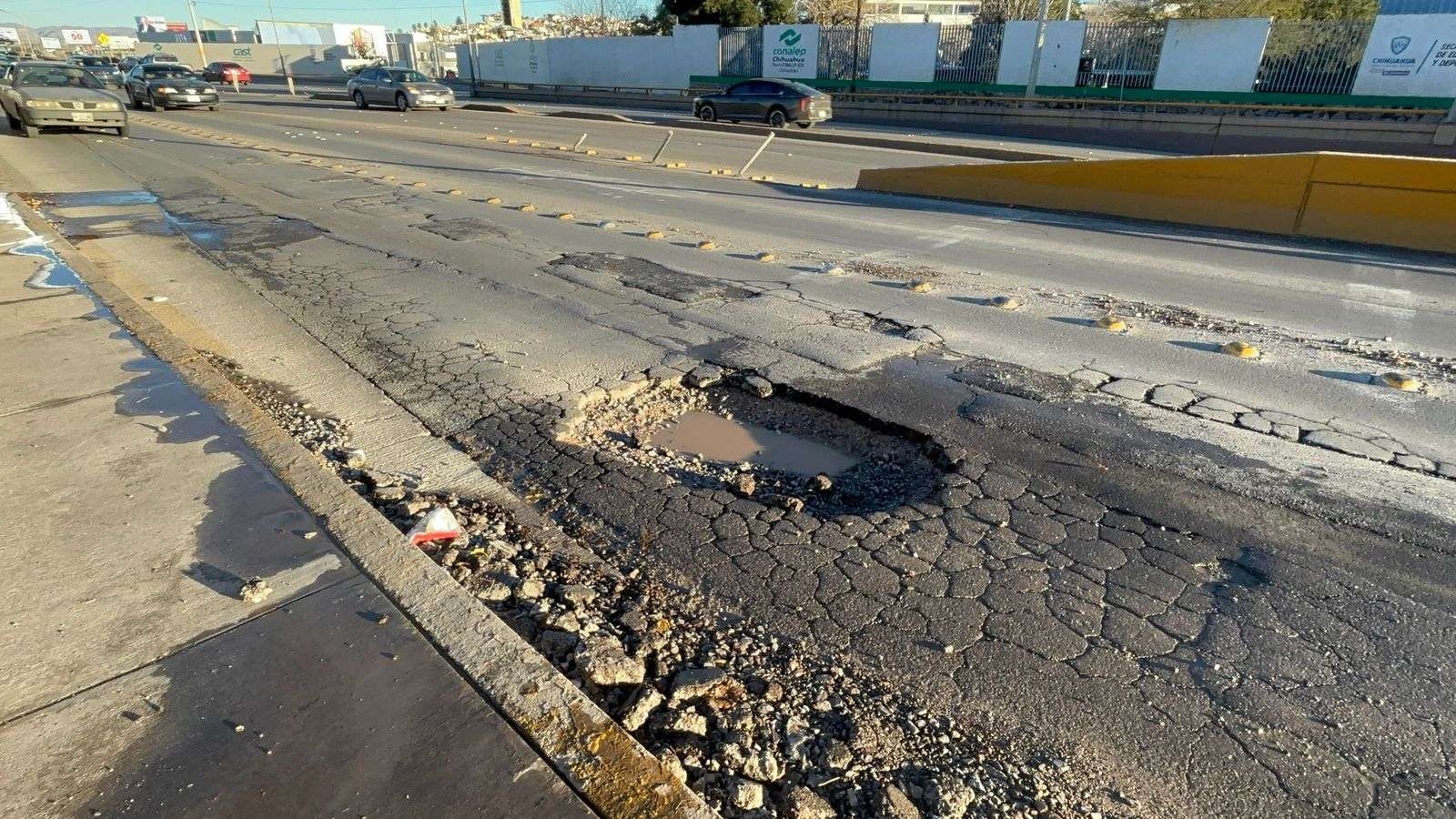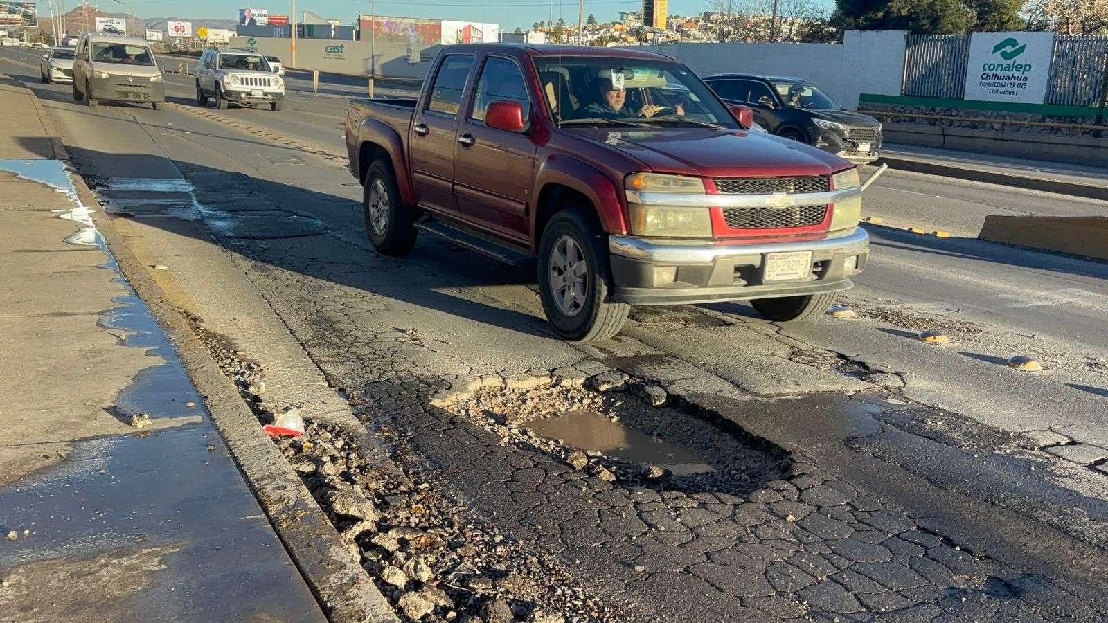 Chihuahua, Chih.– Conductores reportaron un enorme bache en la avenida La Cantera, en sentido de este a oeste, antes de llegar al periférico de la Juventud, justo frente a las instalaciones del Conalep II, pues señalan que representa un riesgo latente.