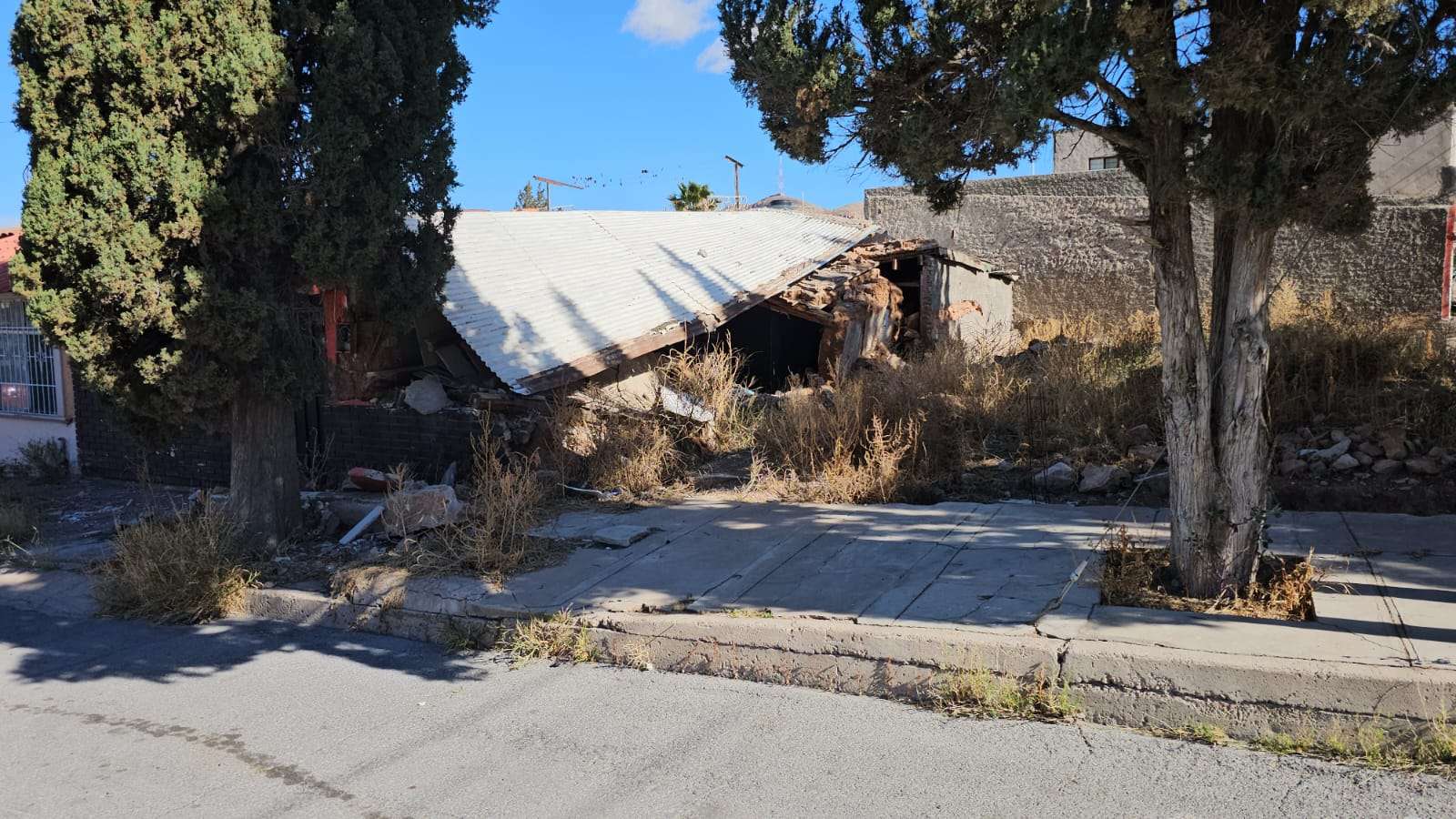 El terreno donde se ubica la propiedad está en litigio. Según los vecinos, el propietario anterior derribó la casa con la intención de reconstruirla, pero tras excavar para los cimientos, las lluvias provocaron el colapso de la barda del domicilio contiguo, atrapando a una mujer adulta mayor. Desde entonces, el caso permanece en disputa legal sin que se haya determinado responsabilidad.
