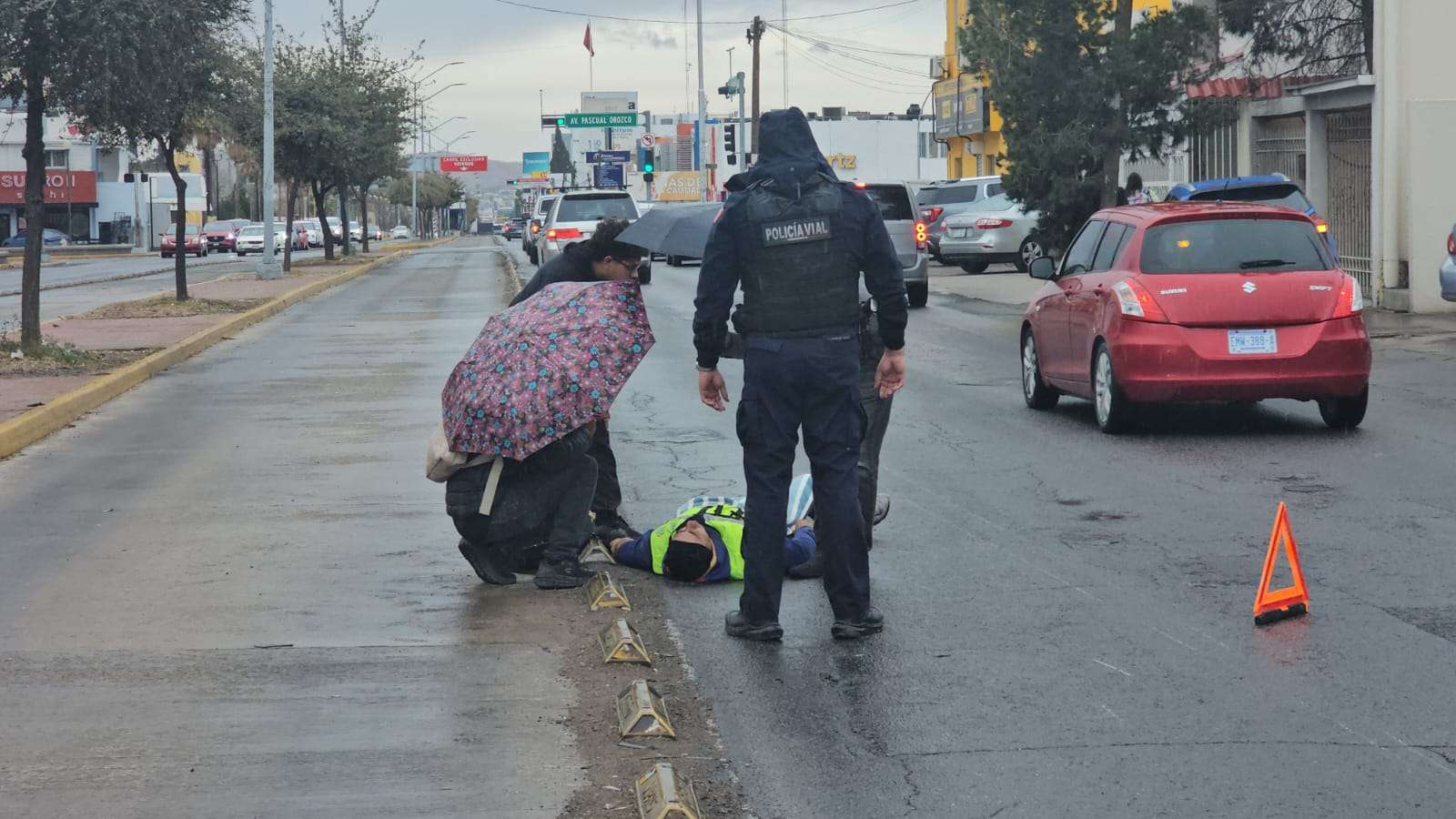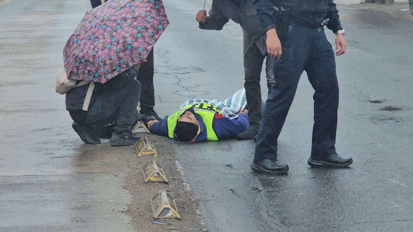 Tras la caída, uno de los ocupantes permaneció tendido en el suelo, manifestando dolor en una de sus extremidades, por lo que personas que transitaban por el lugar acudieron a auxiliarlo.