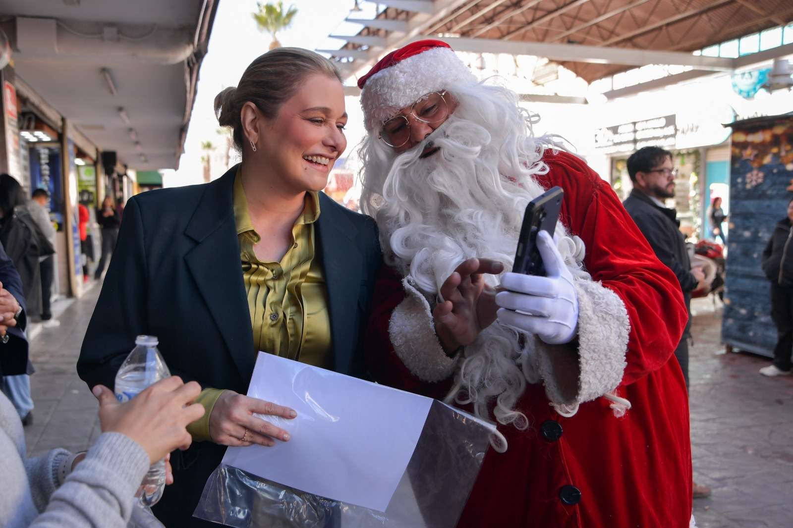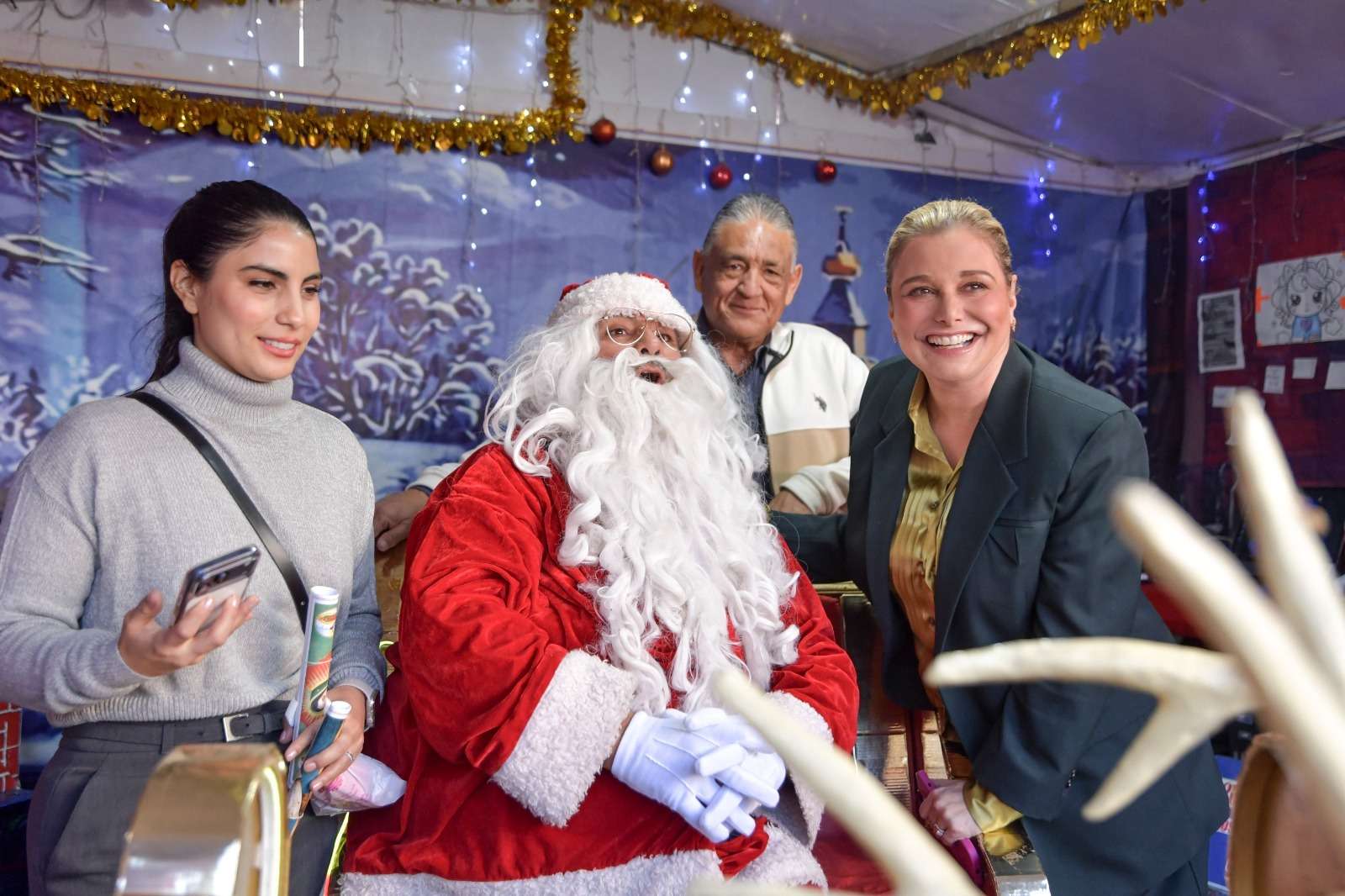 Durante el trayecto, la mandataria se acercó a los puestos de fotografía con temáticas navideñas, que cada año se colocan en la calle Libertad para capturar los recuerdos de miles de familias.