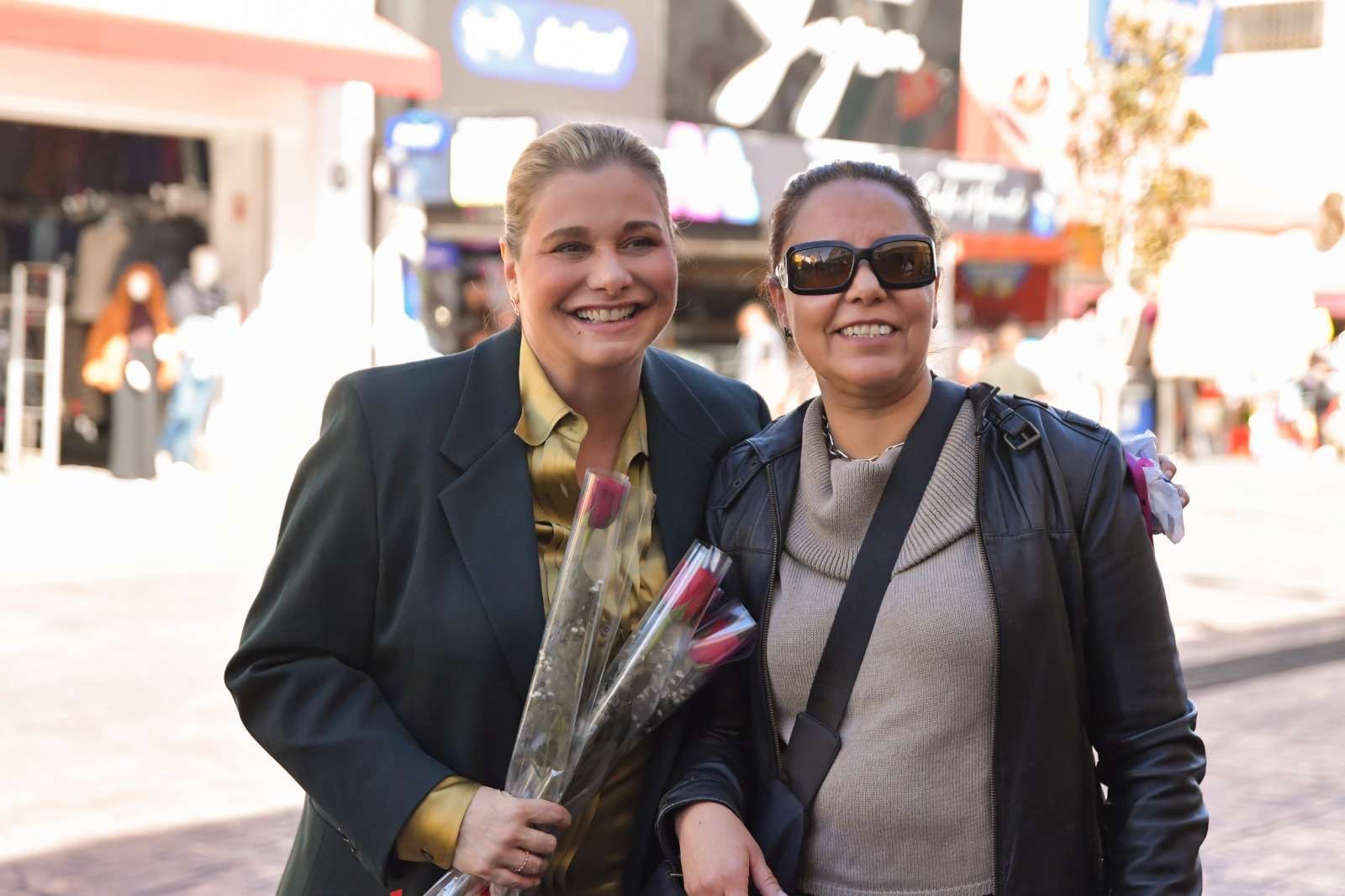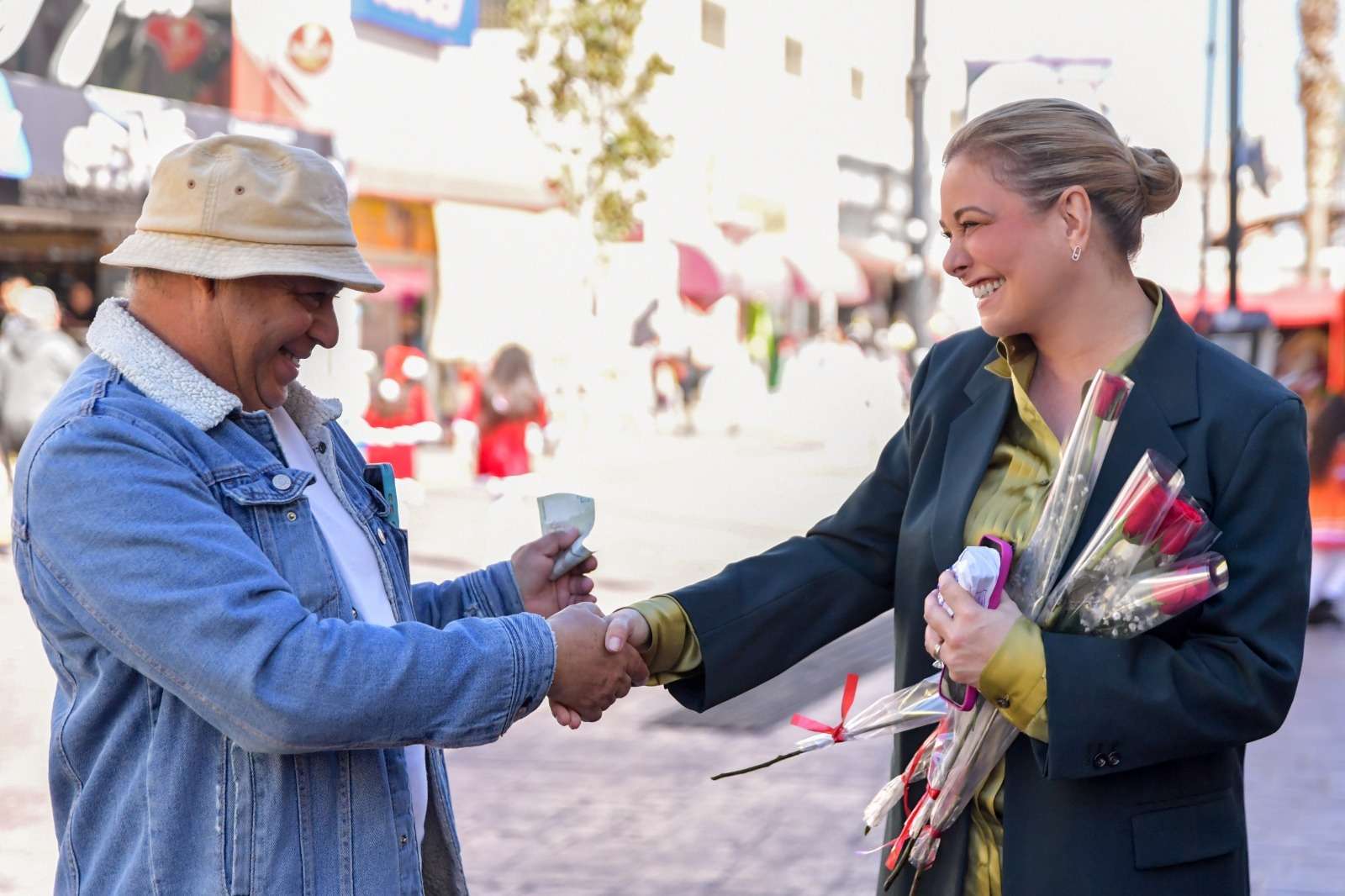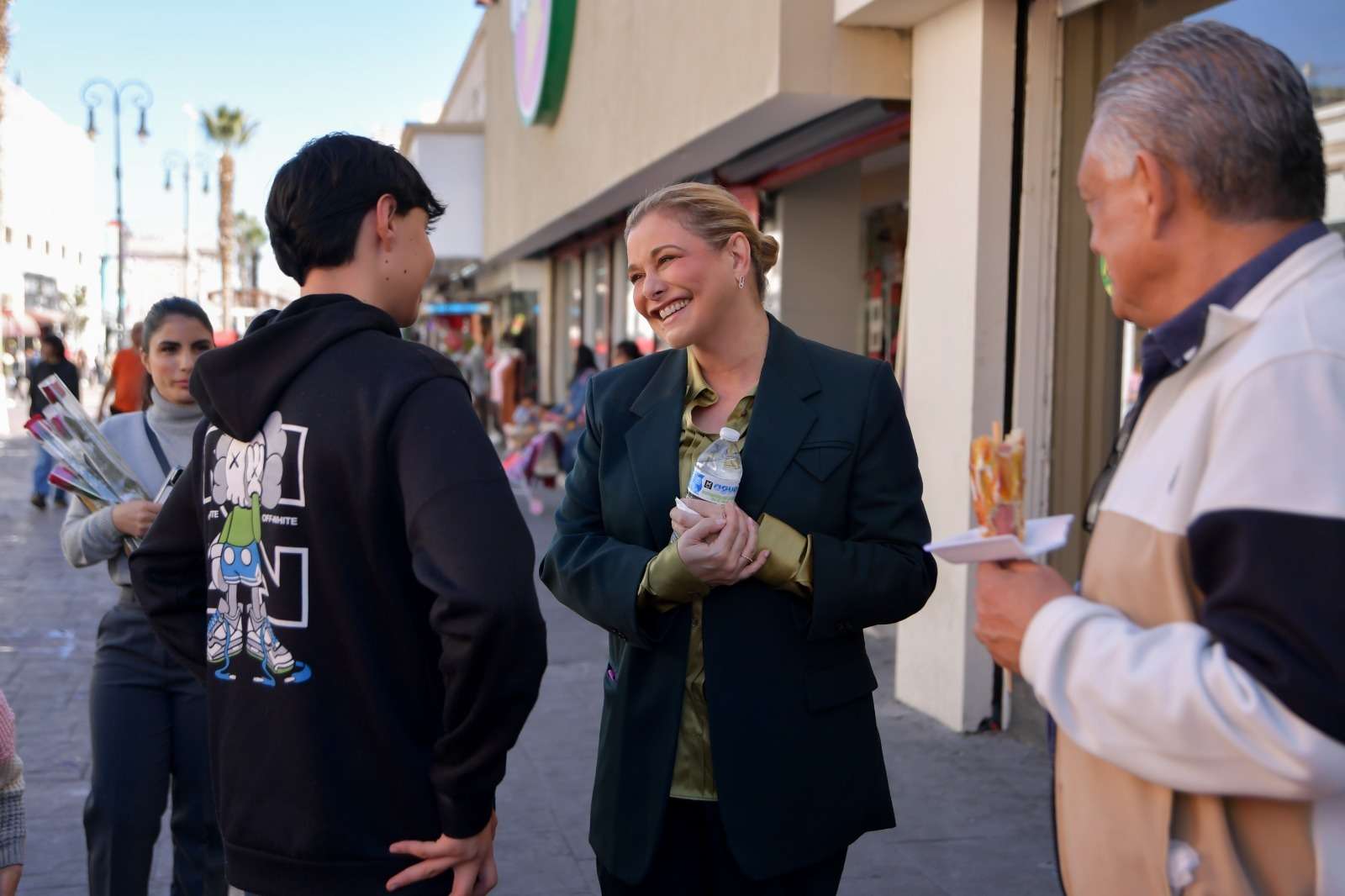 Chihuahua, Chih.- En el marco de las festividades decembrinas, la gobernadora Maru Campos recorrió las calles del Centro Histórico de Chihuahua capital, con el objetivo de convivir con los paseantes, así como con los locatarios y comerciantes de la zona.