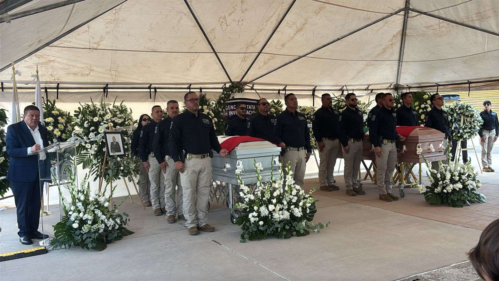Chihuahua.- En una ceremonia marcada por el respeto y la solemnidad, este lunes fueron despedidos los restos mortales de Pedro Román Oseguera Cervantes, director de la Agencia Estatal de Investigación (AEI), y del agente Manuel Méndez Montes, quienes perdieron la vida en cumplimiento de su deber.