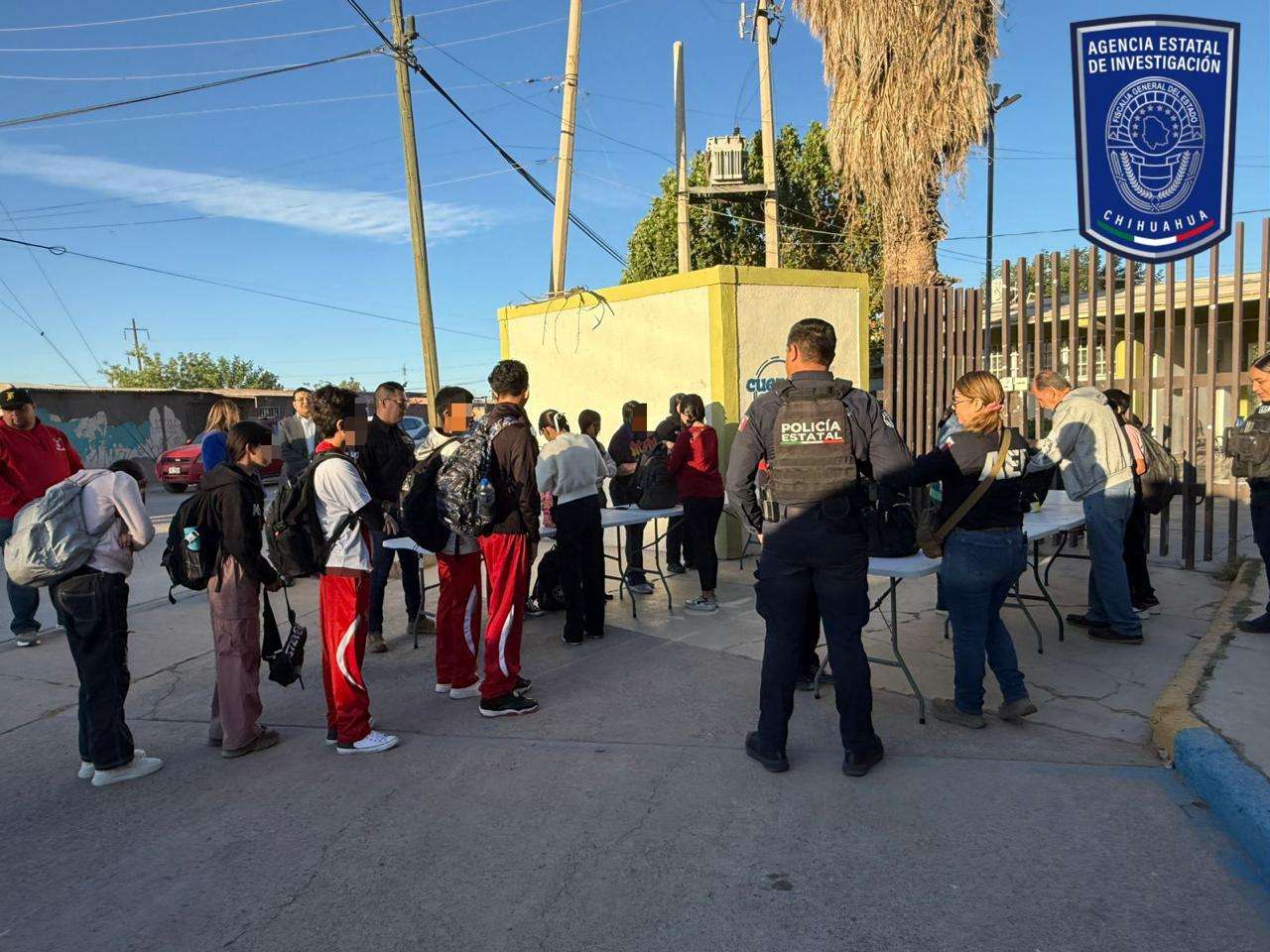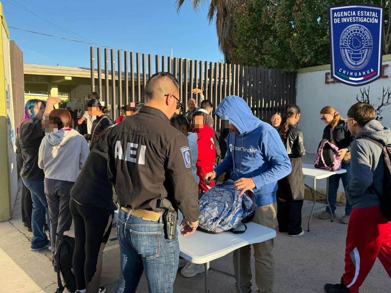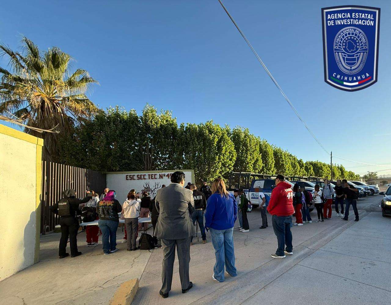 Nuevo Casas Grandes, Chih.- Elementos de la Agencia Estatal de Investigación de la Fiscalía de Distrito Zona Norte, en coordinación con agentes de la Secretaría de Seguridad Pública Estatal, instrumentaron un operativo de seguridad y vigilancia en las instalaciones de la Secundaría Técnica No. 49 de Nuevo Casas Grandes.