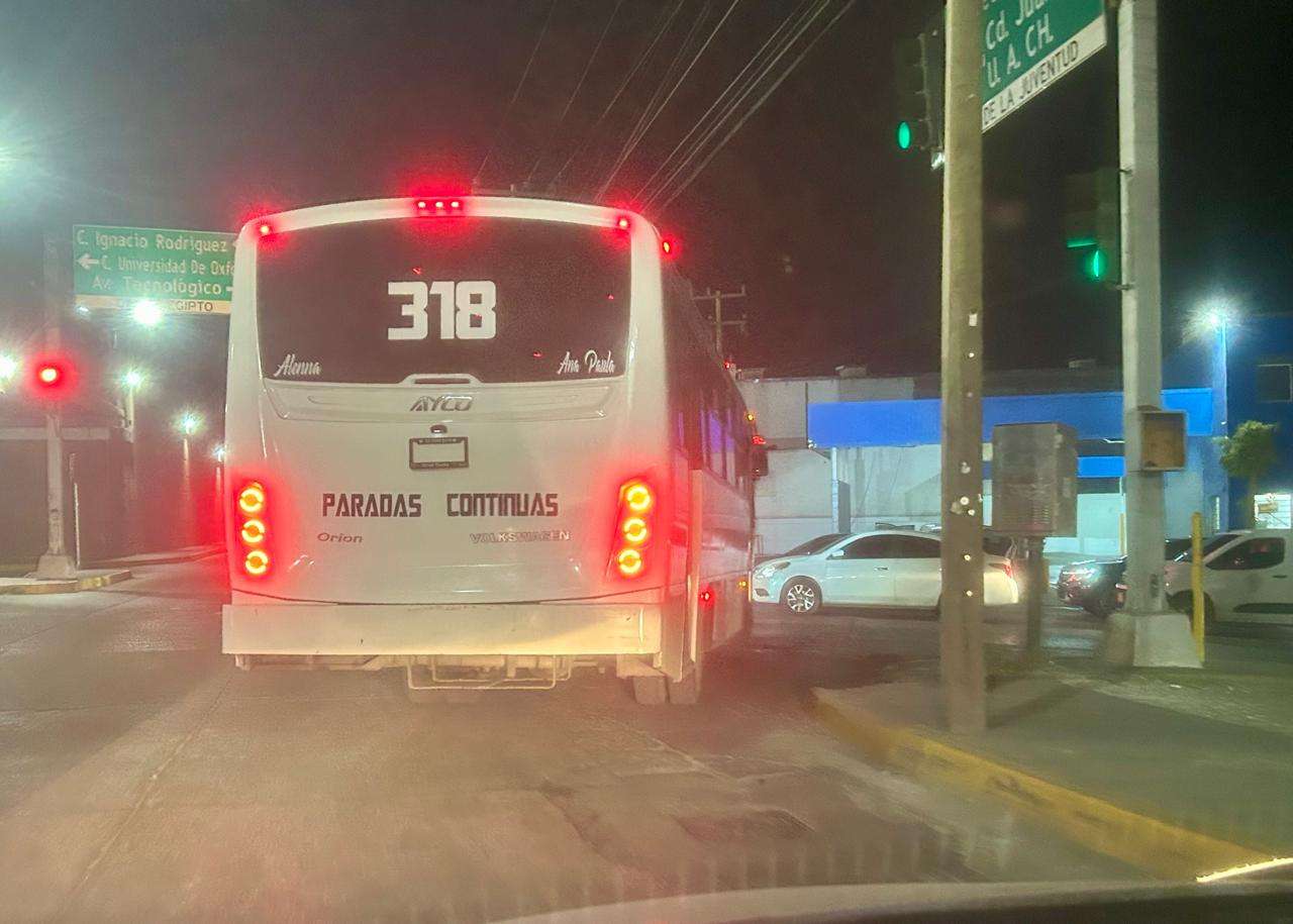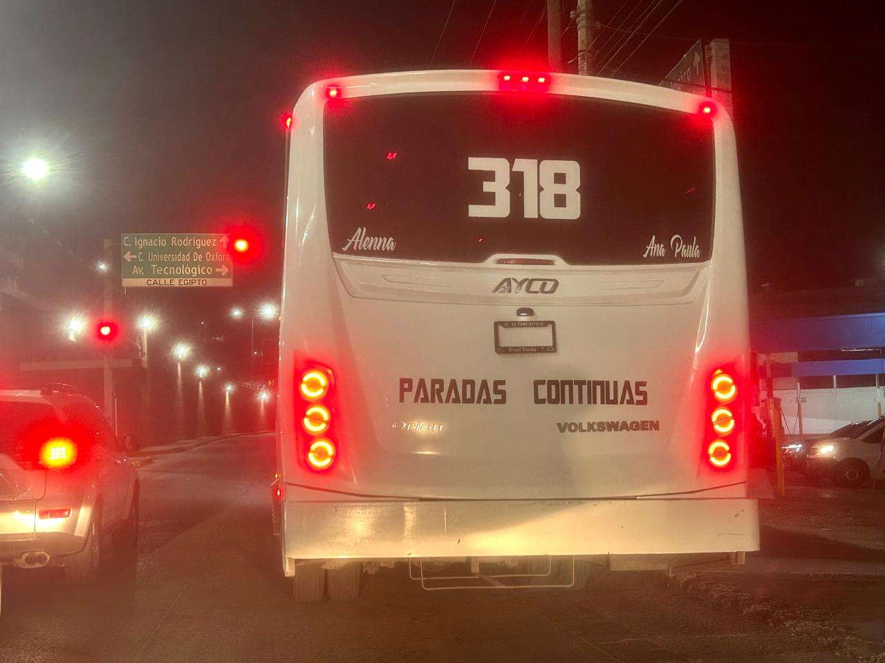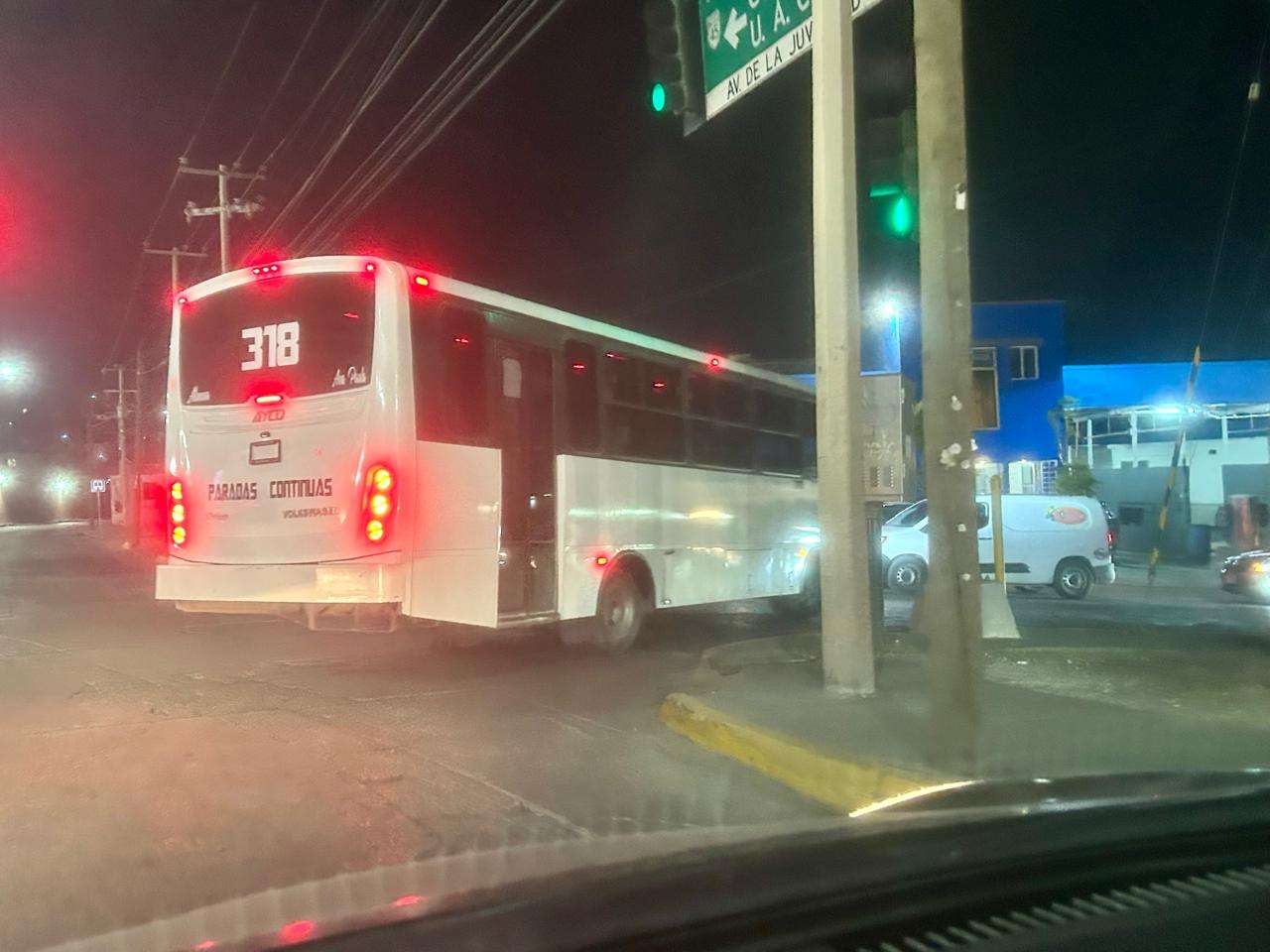 El reporte se originó en el cruce de la lateral del Periférico de la Juventud y la calle Egipto, al norte de la ciudad, donde testigos identificaron a la unidad número 318, la cual circulaba de noche sin las obligadas placas de circulación.