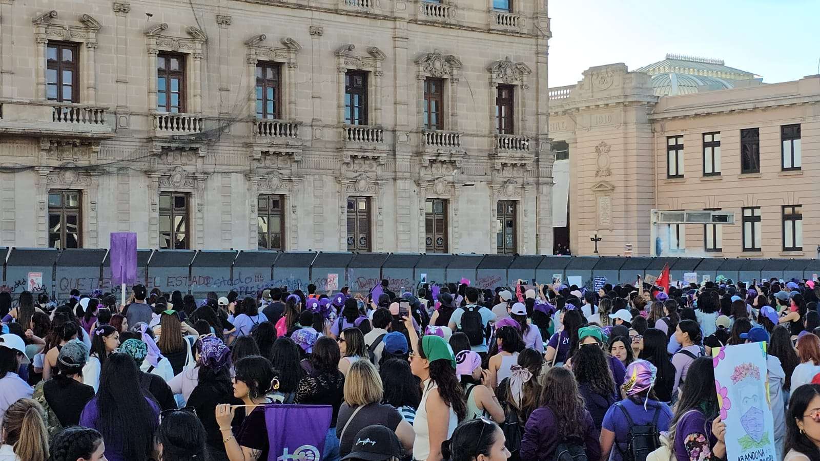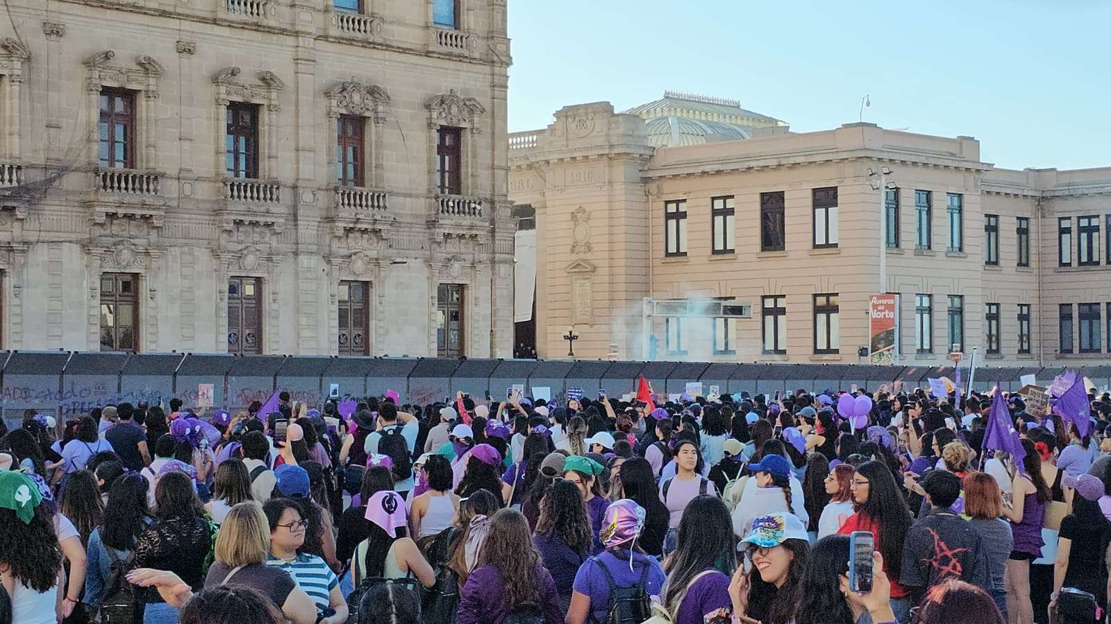 Los estruendos ocurrieron mientras las manifestantes coreaban consignas y exigían el retiro de las barreras que impedían el acceso al Palacio de Gobierno.