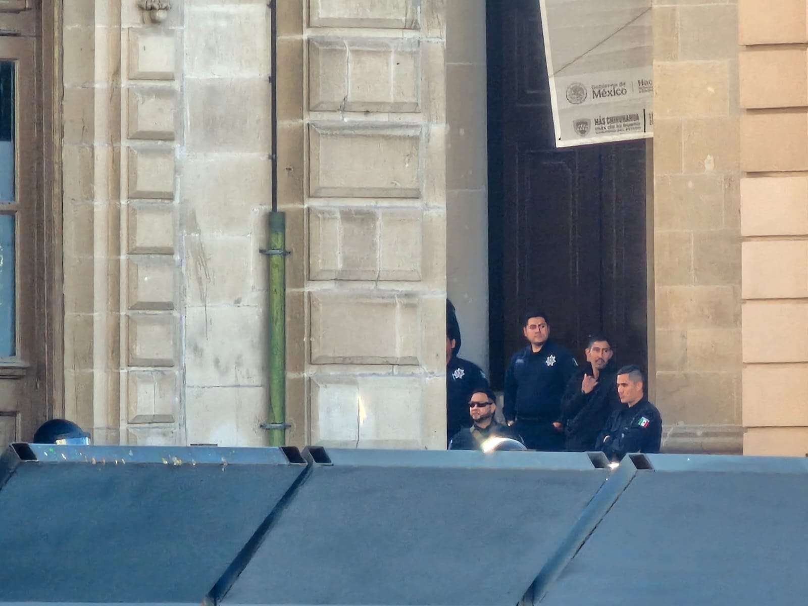 Al interior del recinto, grupos de elementos antimotines permanecieron en alerta máxima para resguardar la integridad del edificio estatal, mientras el contingente insistía en sus intentos por superar la barrera metálica y acceder a la sede del Ejecutivo.