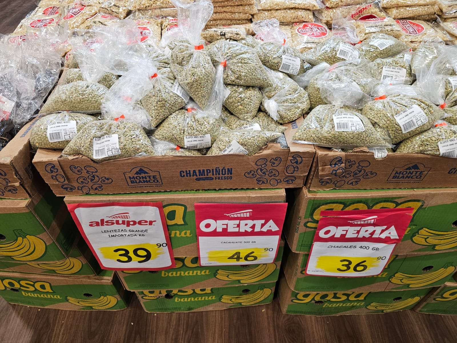 Mientras tanto, en tiendas de autoservicio el filete de pescado se oferta hasta en 90 pesos por kilogramo y el camarón mediano alrededor de 200 pesos por kilo. Otros productos como los chacales se venden en 37 pesos el medio kilo y las lentejas en 40 pesos el kilogramo.