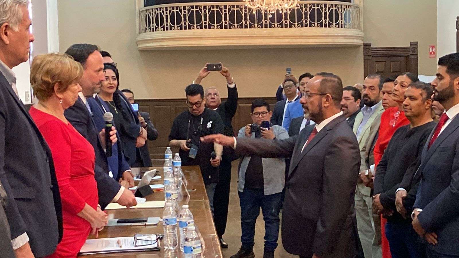 El Secretario General de Gobierno Santiago de la Peña, felicitó a la mesa directiva saliente que sin ningún sobresalto realizaron muchas cosas por su gremio y señaló que fue un honor acompañarlos en este relevo institucional.