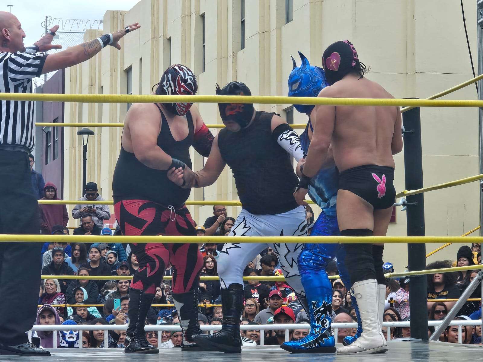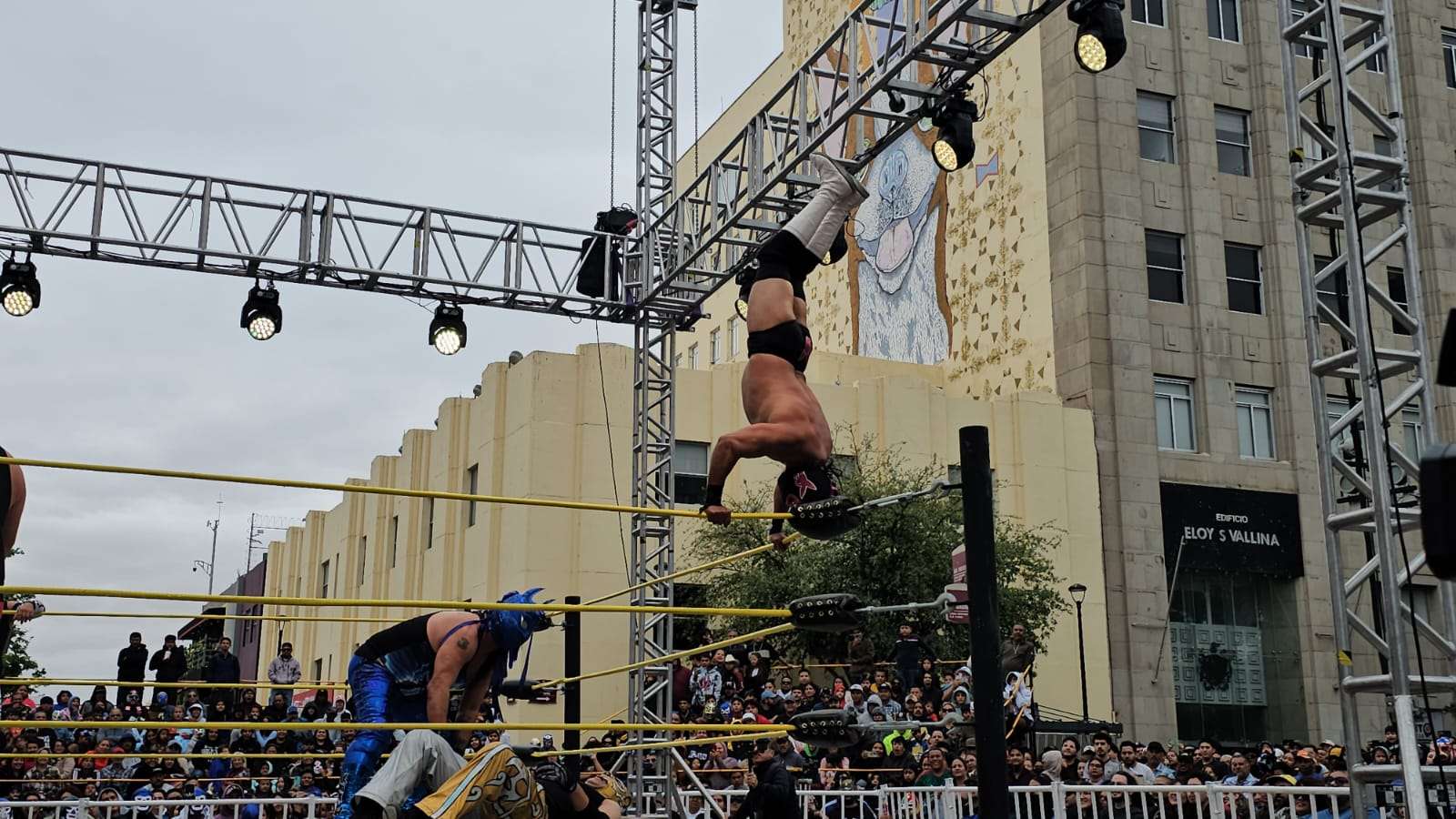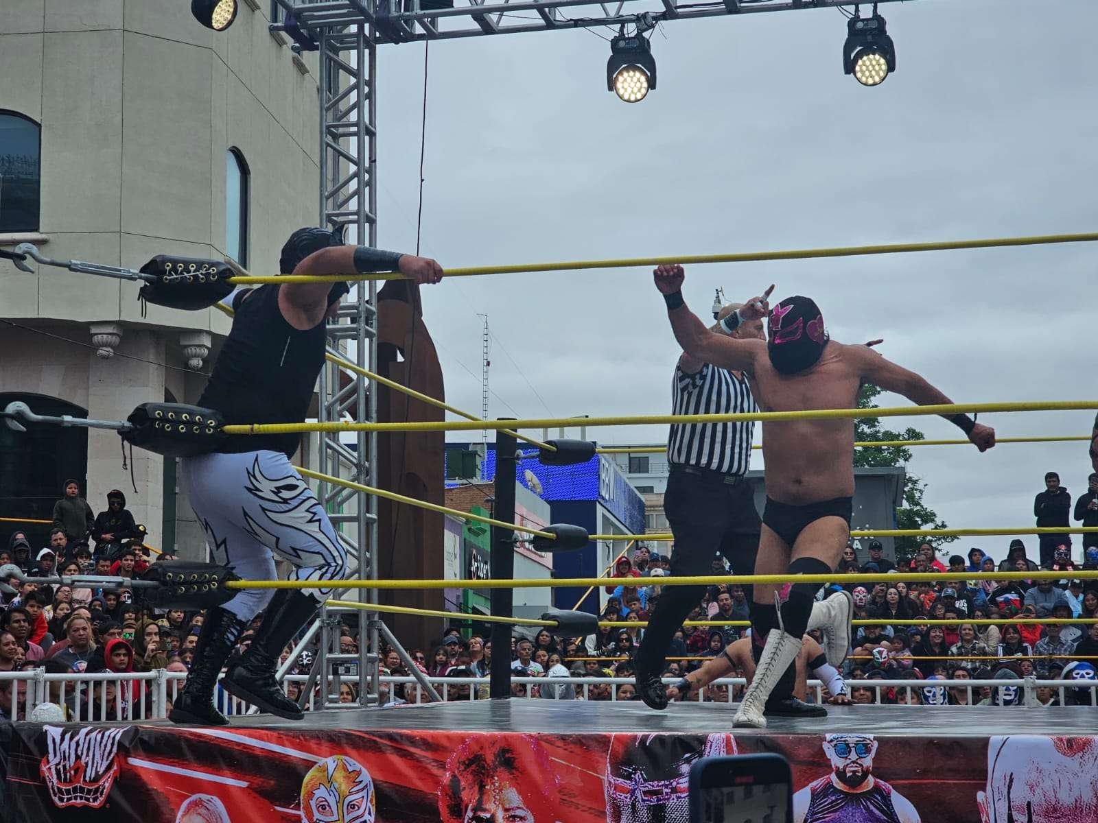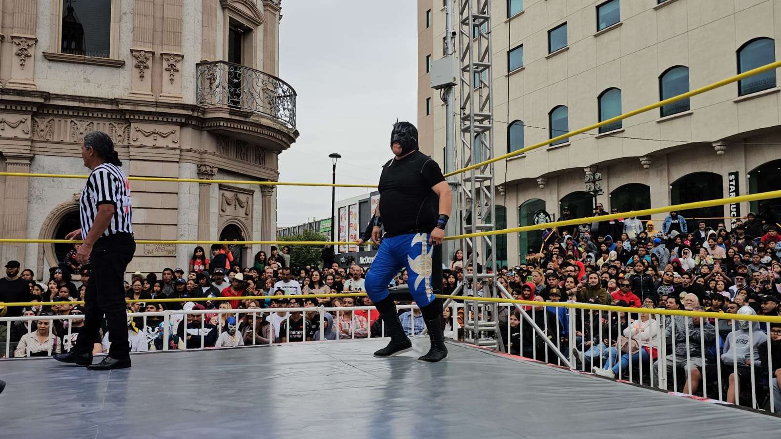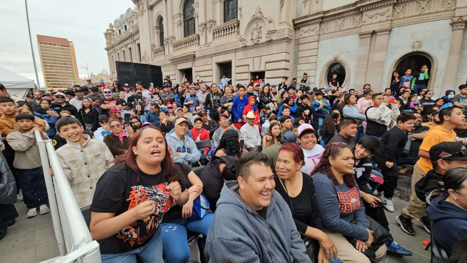 Chihuahua.- La pasión de la lucha libre mexicana se apoderó por completo de la Plaza de Armas este domingo, donde rudos y técnicos contendieron en una caída sin límites de tiempo que mantuvo al filo del asiento a cientos de familias chihuahuenses.