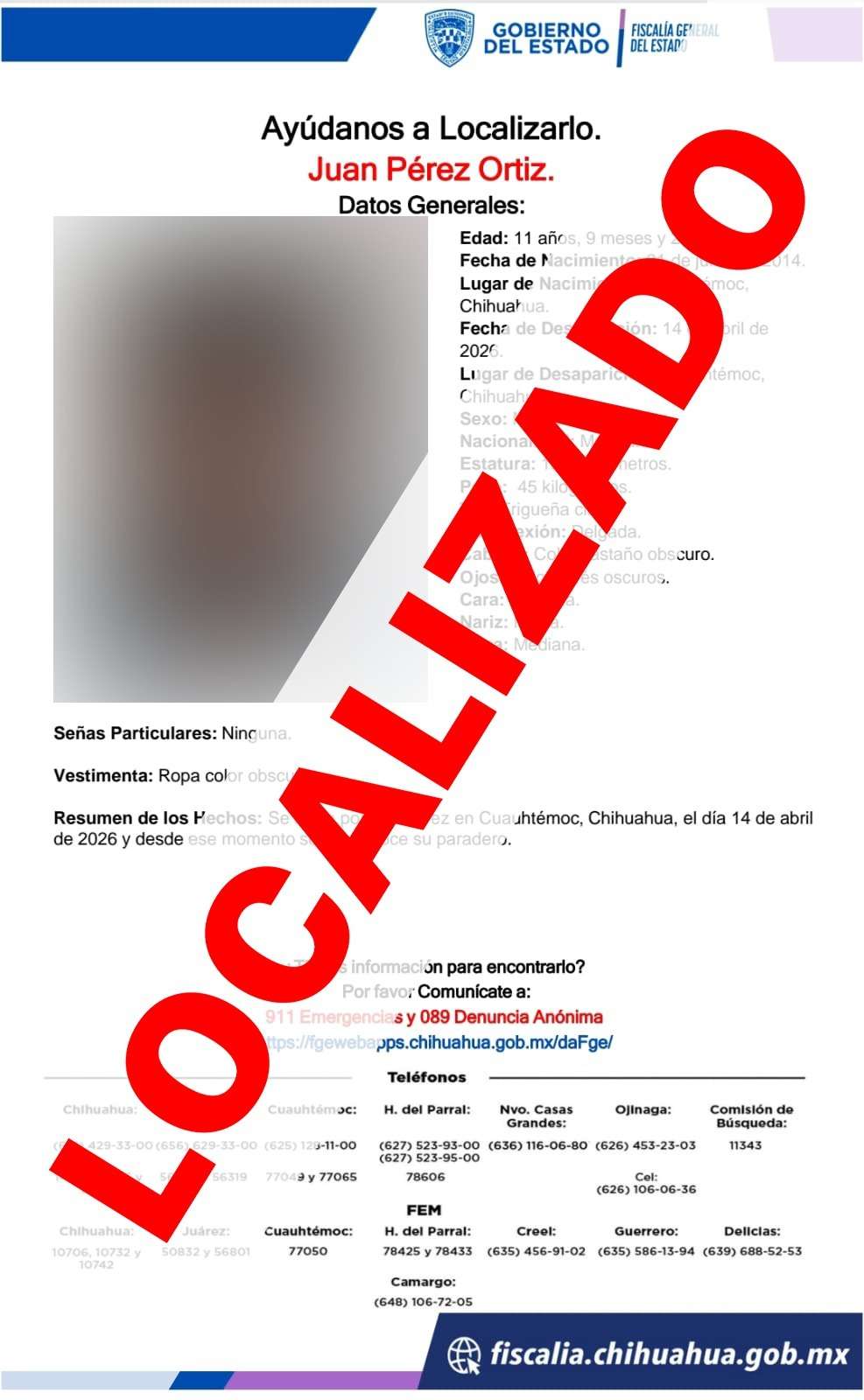 La Fiscalía General del Estado trabaja de manera permanente en la búsqueda y localización de personas desaparecidas, a fin de brindar tranquilidad y certeza a sus familias.