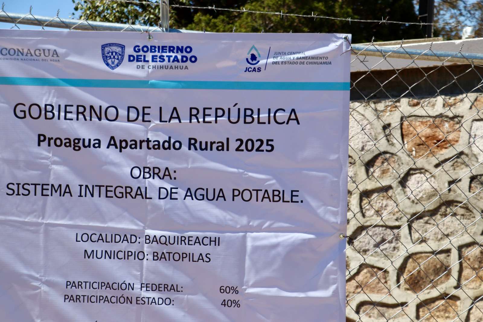 Chihuahua.- La Junta Central de Agua y Saneamiento (JCAS) entregó un sistema de agua potable a habitantes de Baquiriachi, municipio de Batopilas, como parte de las acciones para mejorar el acceso al recurso hídrico en zonas prioritarias de la entidad.