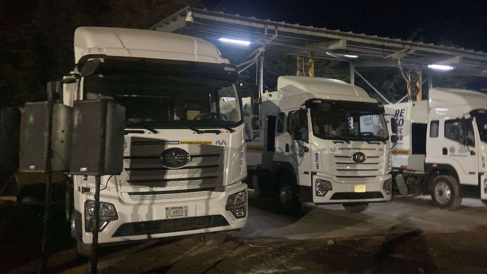 Asimismo, se realizó la entrega de 13 camionetas estaquitas, 3 camionetas de 3 toneladas y media, y seis camionetas doble cabina a la Dirección de Servicios Públicos Municipales.