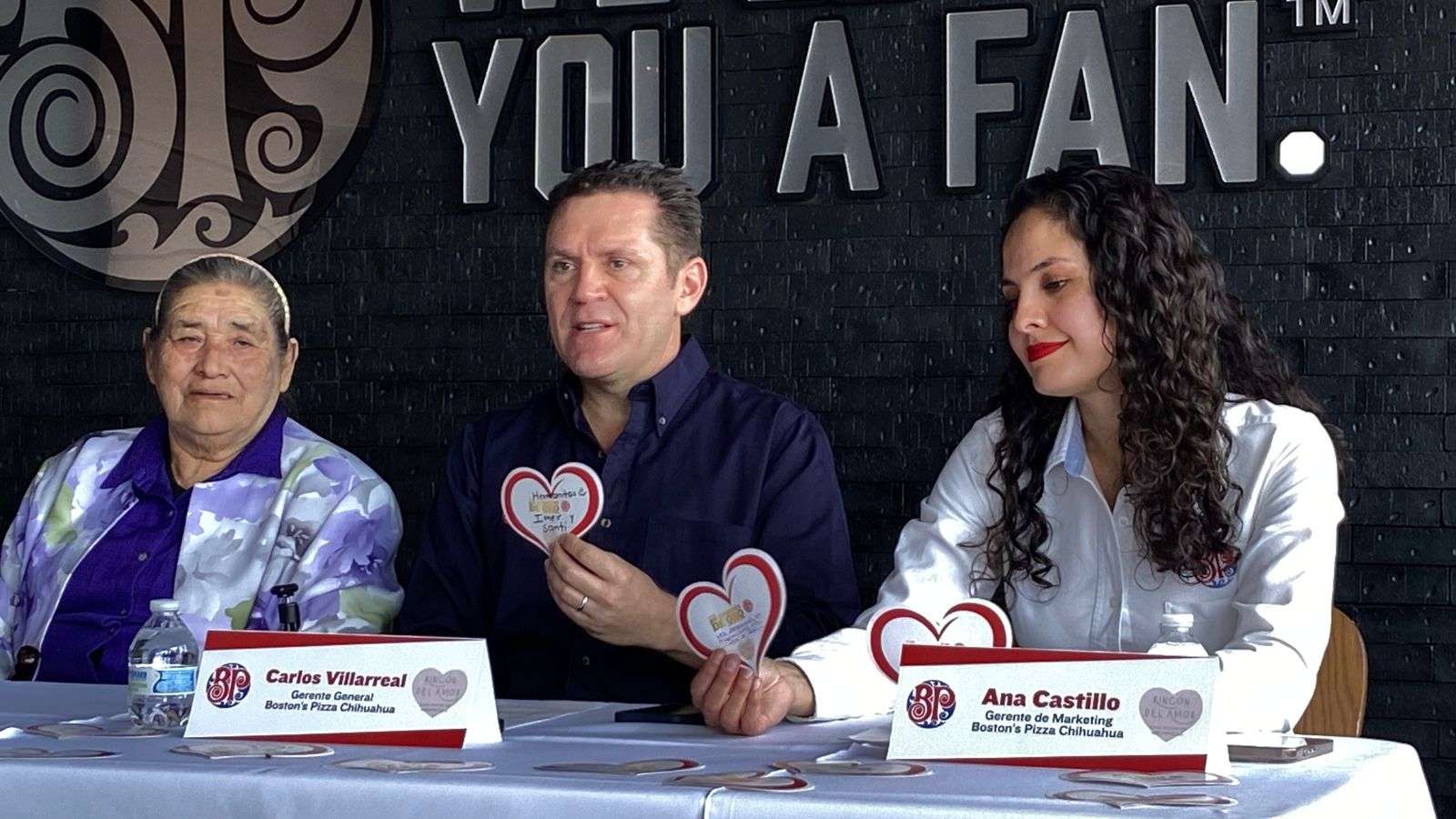 La señora Margarita García, quien es fundadora de esta Casa Hogar recibió de manos del gerente general de Boston's Pizza Carlos Villarreal y de Ana Castillo Gerente de Marketing el cheque del donativo.