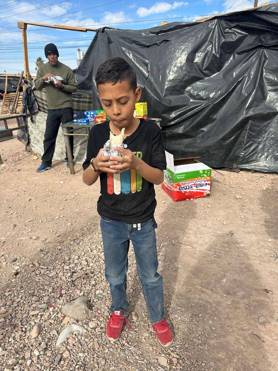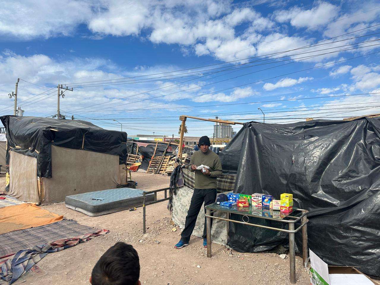 Chihuahua.- Miembros de La Opción de Chihuahua acudieron el día de ayer al campamento migrante ubicado en la intersección de Juan Pablo Segundo y calle Industrial 10, en la colonia El Ejido Tabalaopa, al sur de la ciudad, para entregar comida a las más de 25 familias que se encuentran viviendo en condiciones precarias.