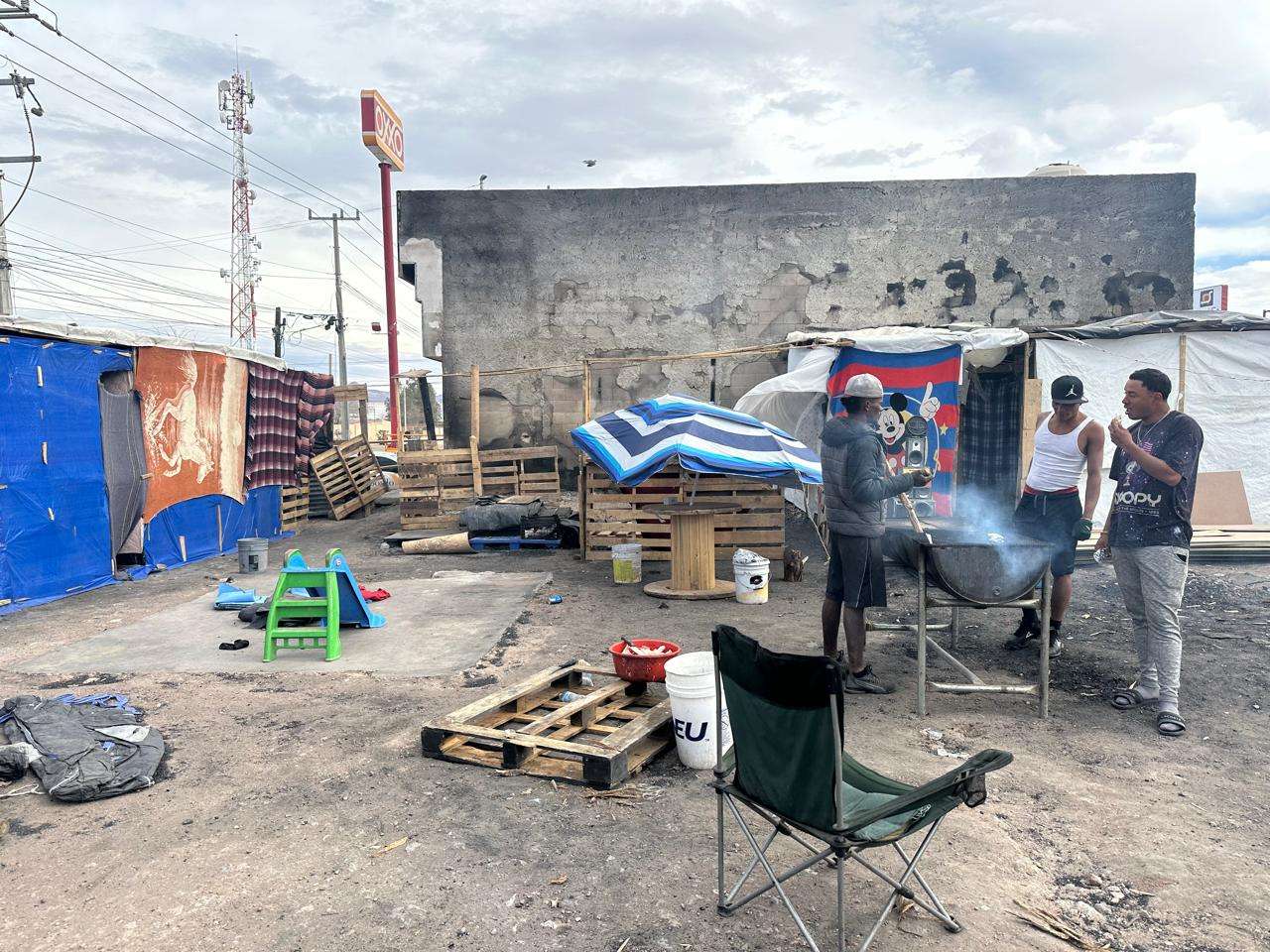 Entre los migrantes se encontraba un hombre que mencionó trabajar como vigilante en un Oxxo, lo que le ayudaba a sobrevivir, pero que las condiciones en el campamento seguían siendo muy difíciles.