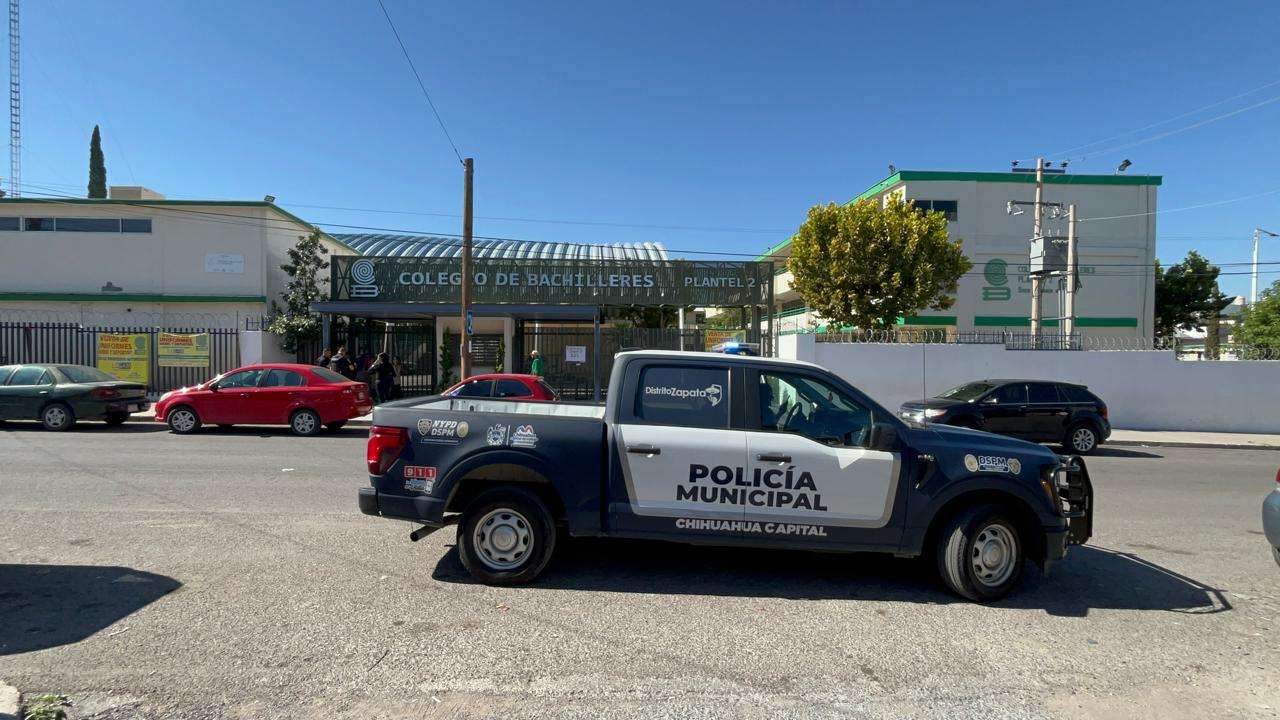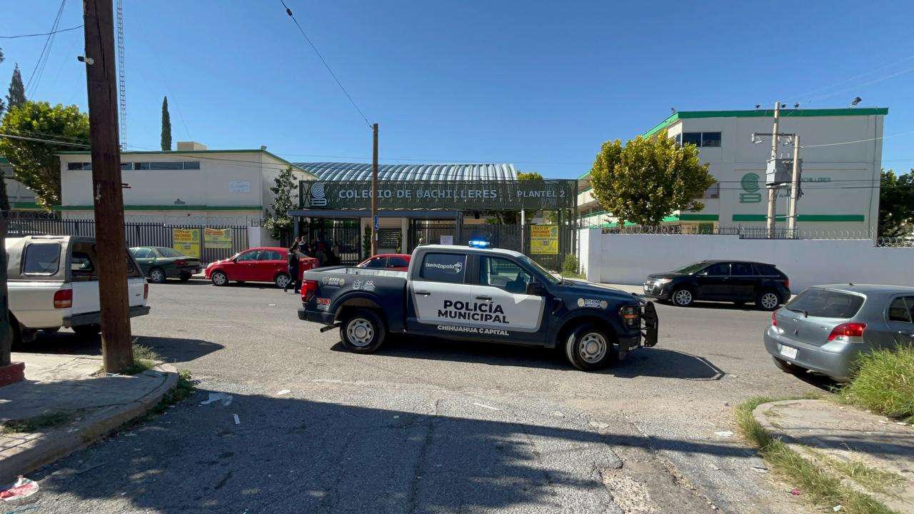 Chihuahua.- Una amenaza de bomba en el Colegio de Bachilleres Plantel 2 generó una fuerte movilización de unidades de emergencia la mañana de este sábado, en la colonia Santa Rosa.