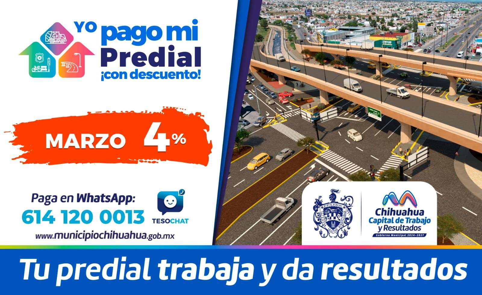 Chihuahua, Chih.— El Gobierno Municipal, a través de la Tesorería, emitió un último llamado a la ciudadanía para aprovechar el estímulo del 4 por ciento en el pago del impuesto Predial, incentivo que concluye formalmente este martes 31 de marzo.