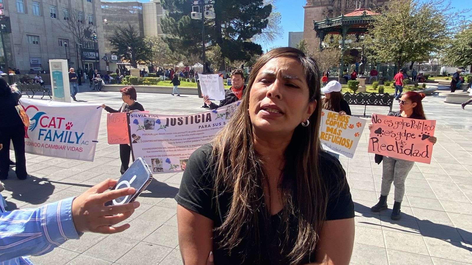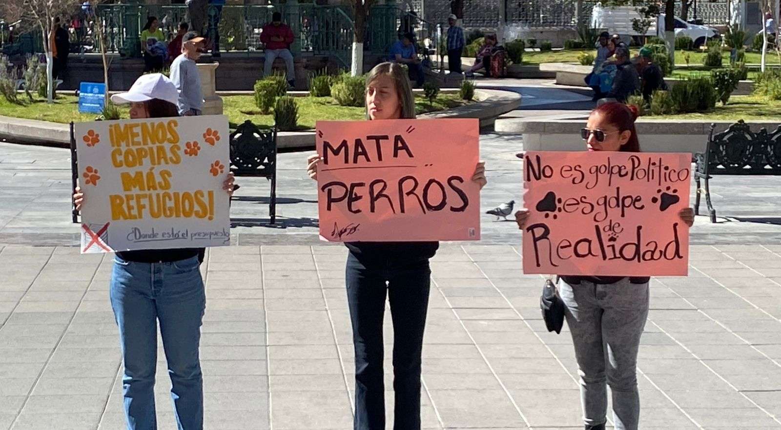 Al grito de “Fuera, Rocío”, “Mata perros”, “No es golpe político, es golpe de realidad”, es como miembros de la asociación Cat Family se manifestaron en la plaza de Armas frente a la presidencia municipal.