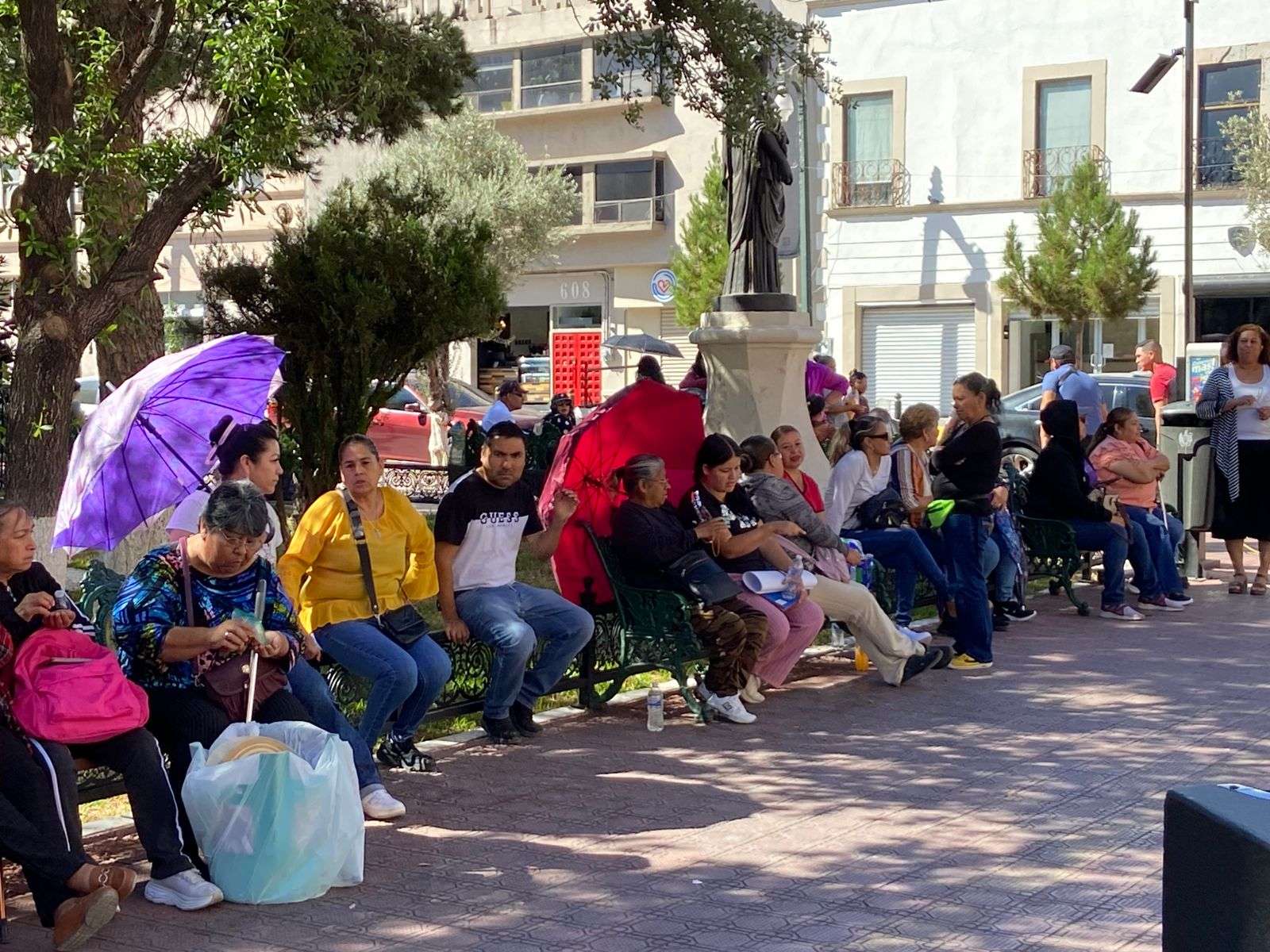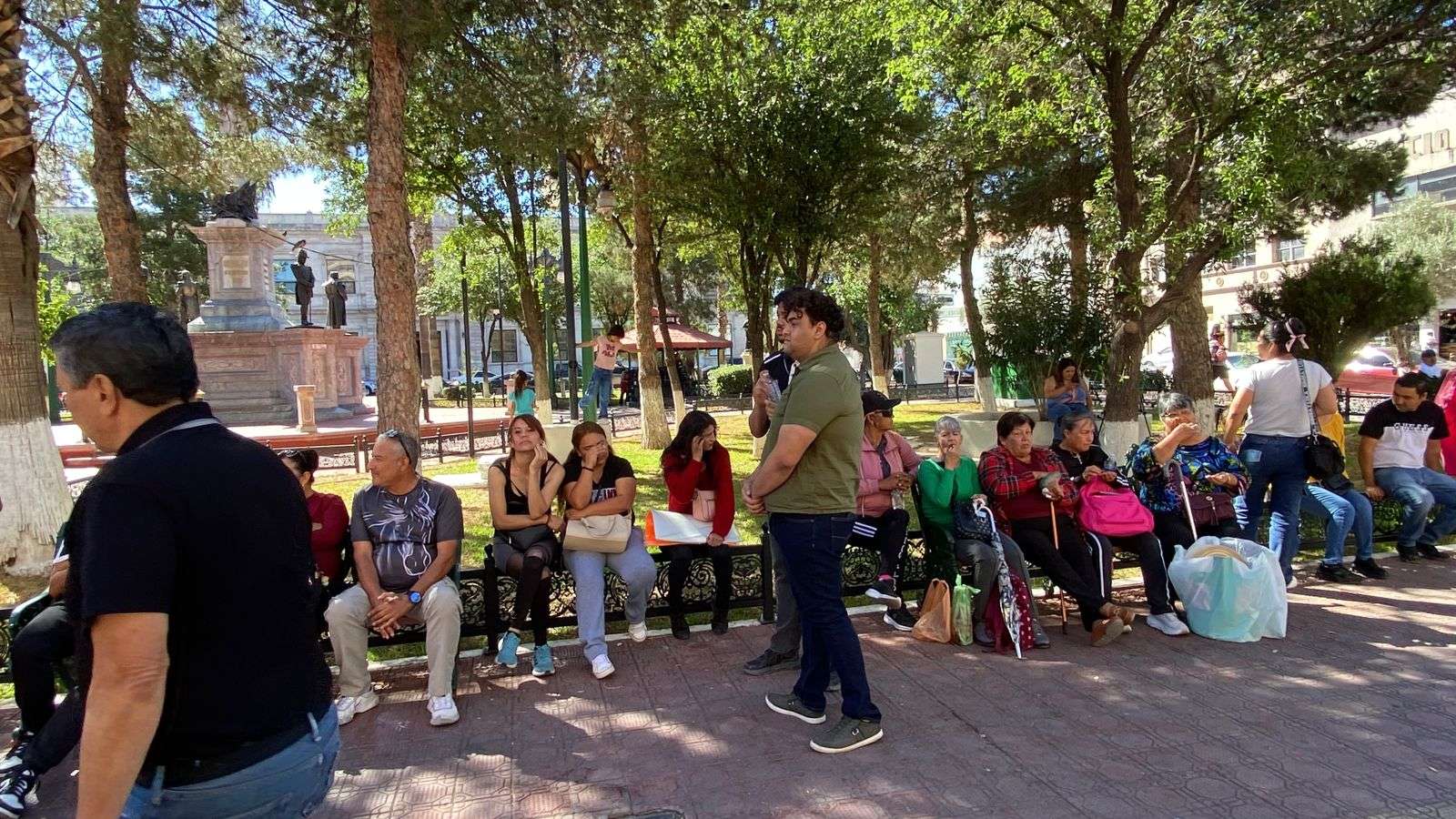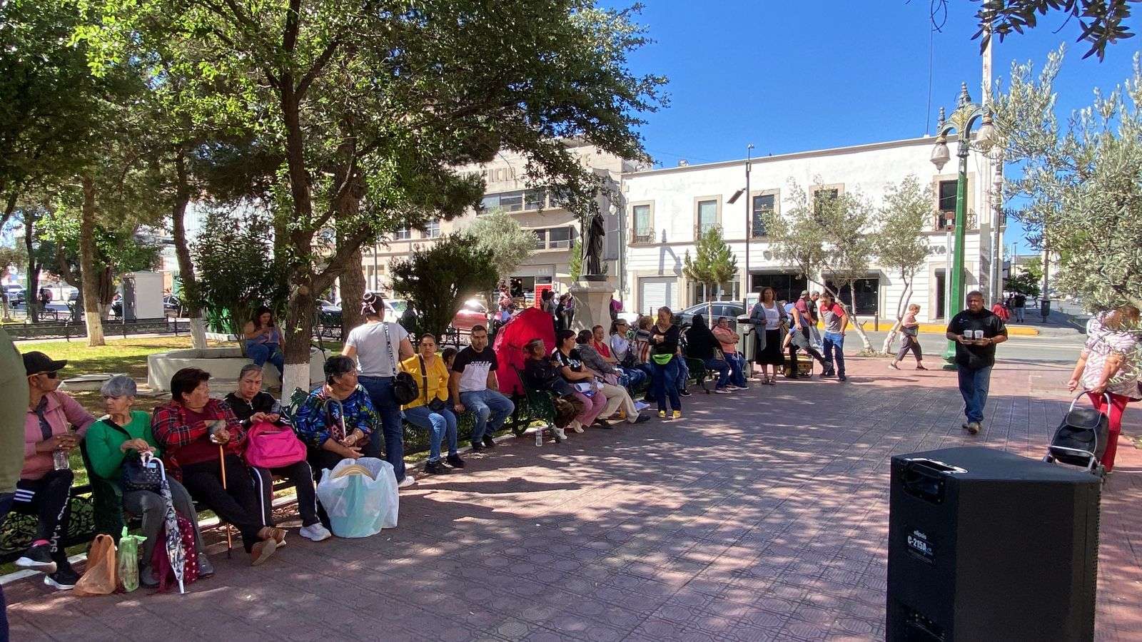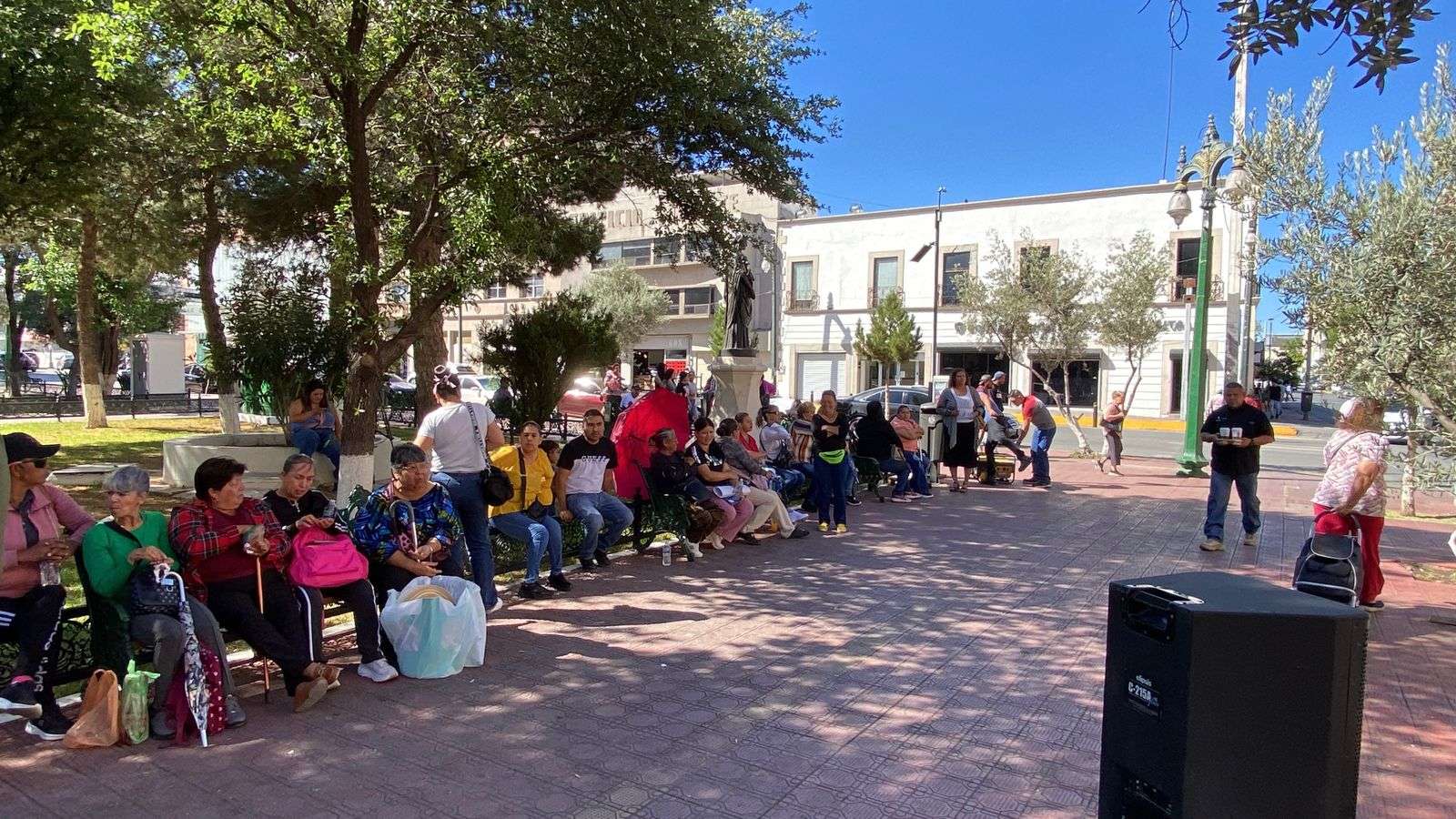 Chihuahua.- En la Plaza Hidalgo se concentraron vecinos de las colonias Punta Oriente, Vistas y Laderas de San Guillermo se reunieron para exigir una solución a las viviendas que les fueron vendidas y ahora les quieren quitar.