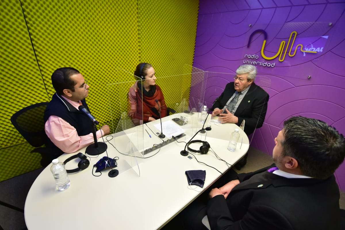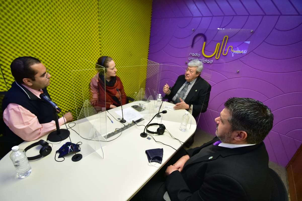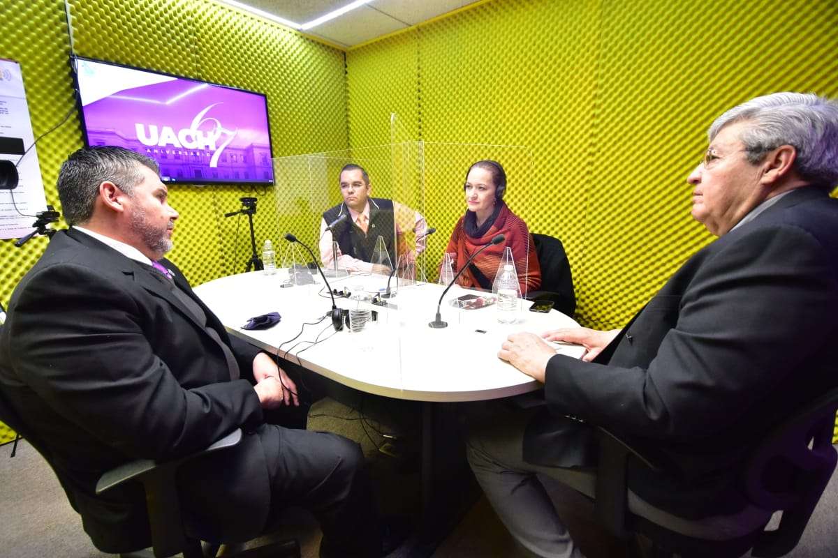 El rector de la UACH, estuvo acompañado en las cabinas de la emisora cultural por el el secretario general, Dr. Sergio Rafael Facio Guzmán y el coordinador de Comunicación Social, Lic. Luis Rubén Maldonado Alvídrez.