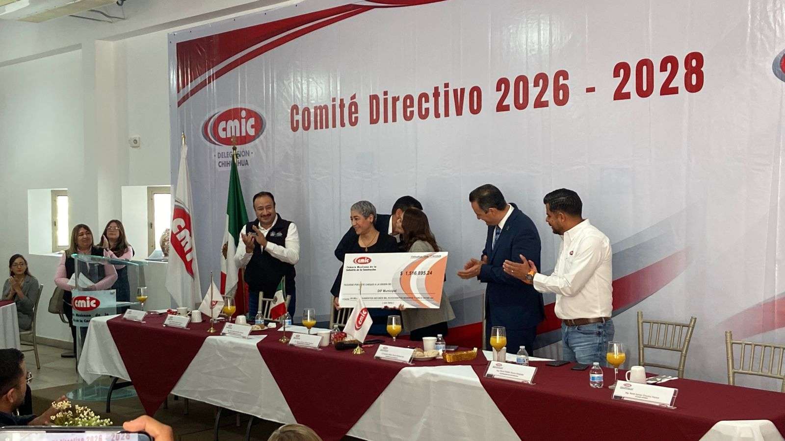 Durante el desayuno informativo, la presidenta del DIF Municipal Karina Olivas, recibió un donativo de un millón 500 mil pesos, gesto que refuerza el compromiso social de la Cámara con las causas comunitarias.