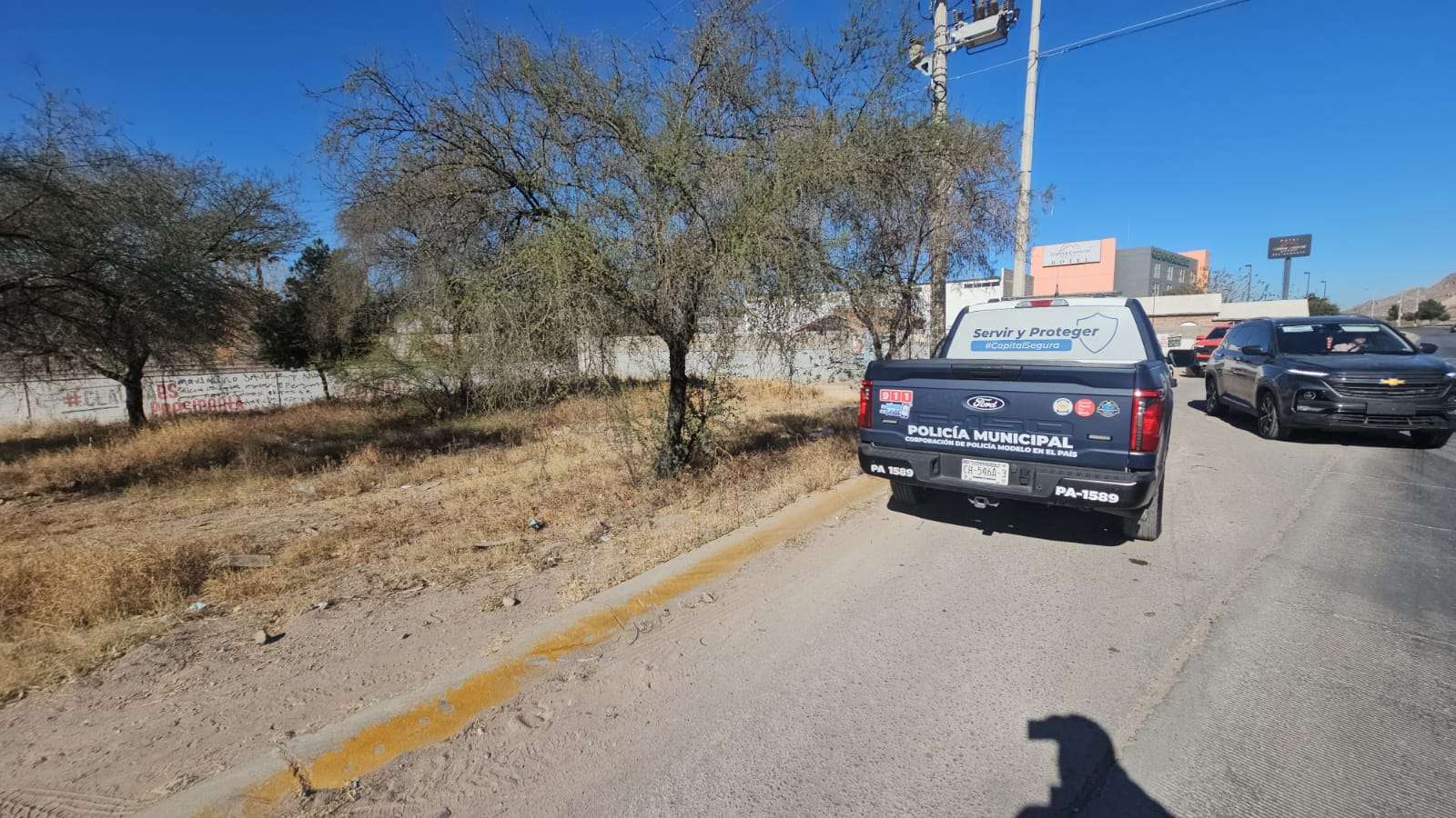 Chihuahua.- Esta mañana se reportó al número de emergencias el hallazgo de una narcopinta en un terreno baldío, ubicado sobre la vialidad Sacramento, cruce con la calle María de los Ángeles, en la colonia Barrio del Norte.