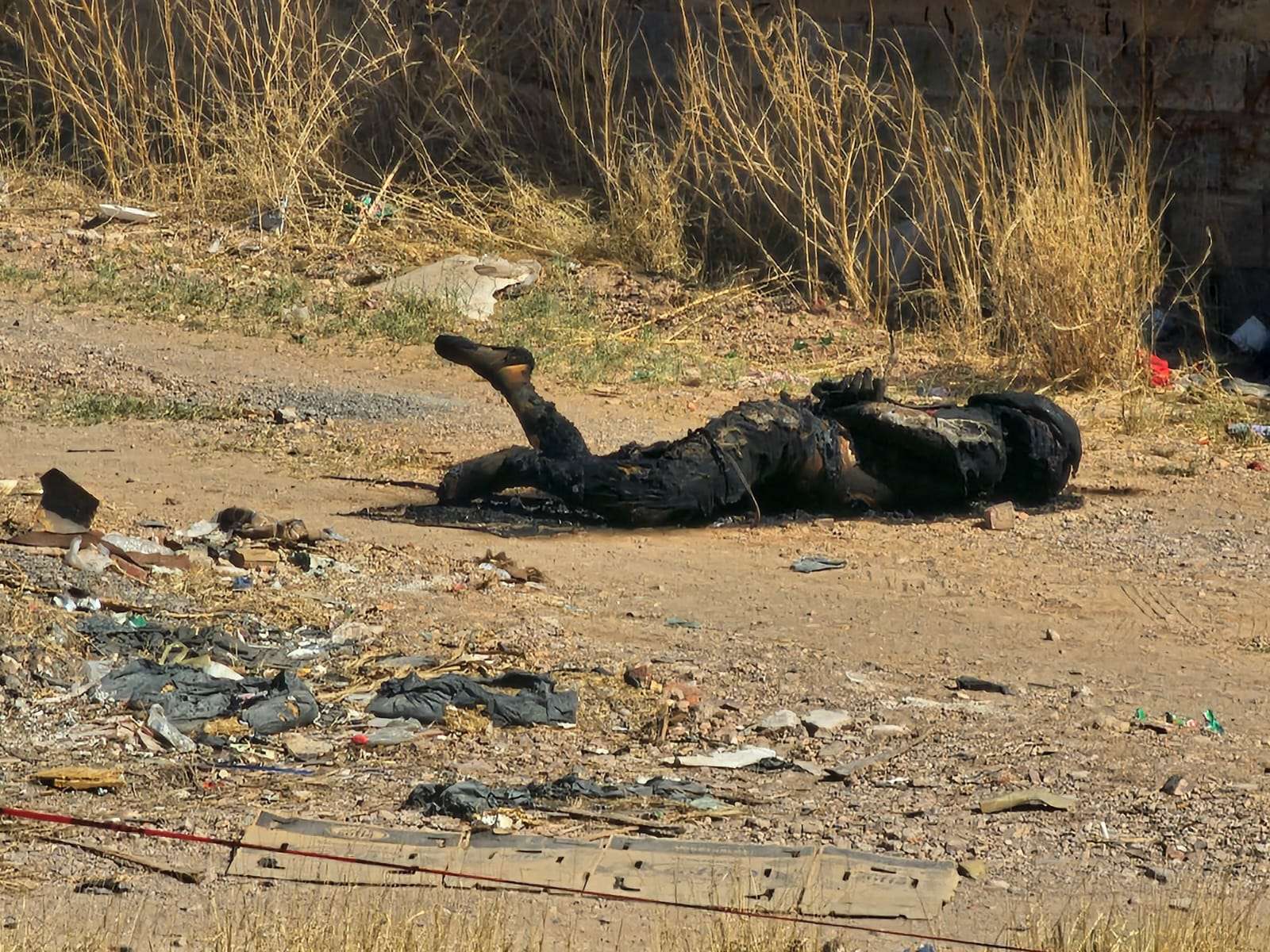De acuerdo con los primeros reportes, la víctima se encontraba atada de pies y manos y presentaba signos de haber sido incendiada, presuntamente cuando aún estaba con vida.