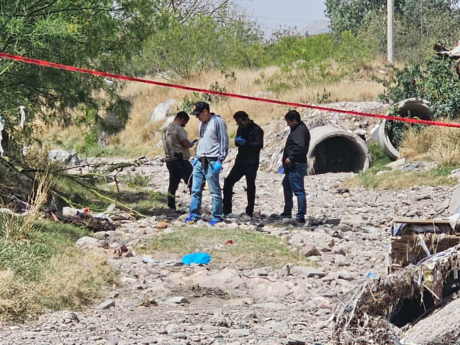 Elementos de la Policía Municipal y de la Policía Estatal acudieron al lugar tras recibir el reporte. Luego de varios minutos de búsqueda en la zona, procedieron a acordonar ampliamente el perímetro para resguardar la escena.