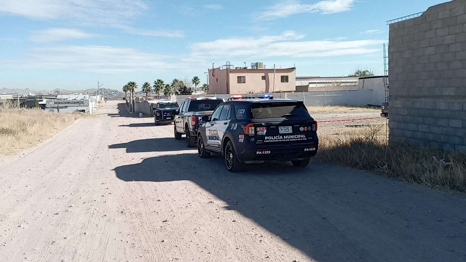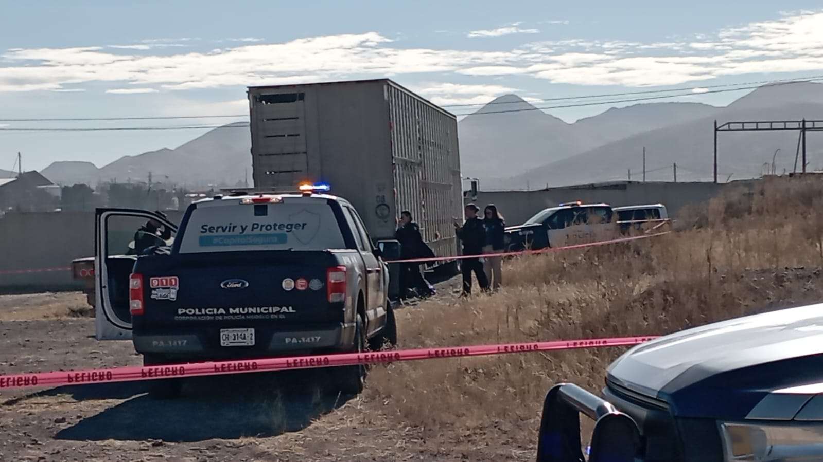 Chihuahua.- Un hombre de aproximadamente 30 años de edad fue localizado sin vida con un disparo en la cabeza en un predio baldío ubicado sobre la calle 132A, en el ejido Labor de Terrazas, donde se encontraba estacionado un tráiler enganchado a una caja para el transporte de ganado.