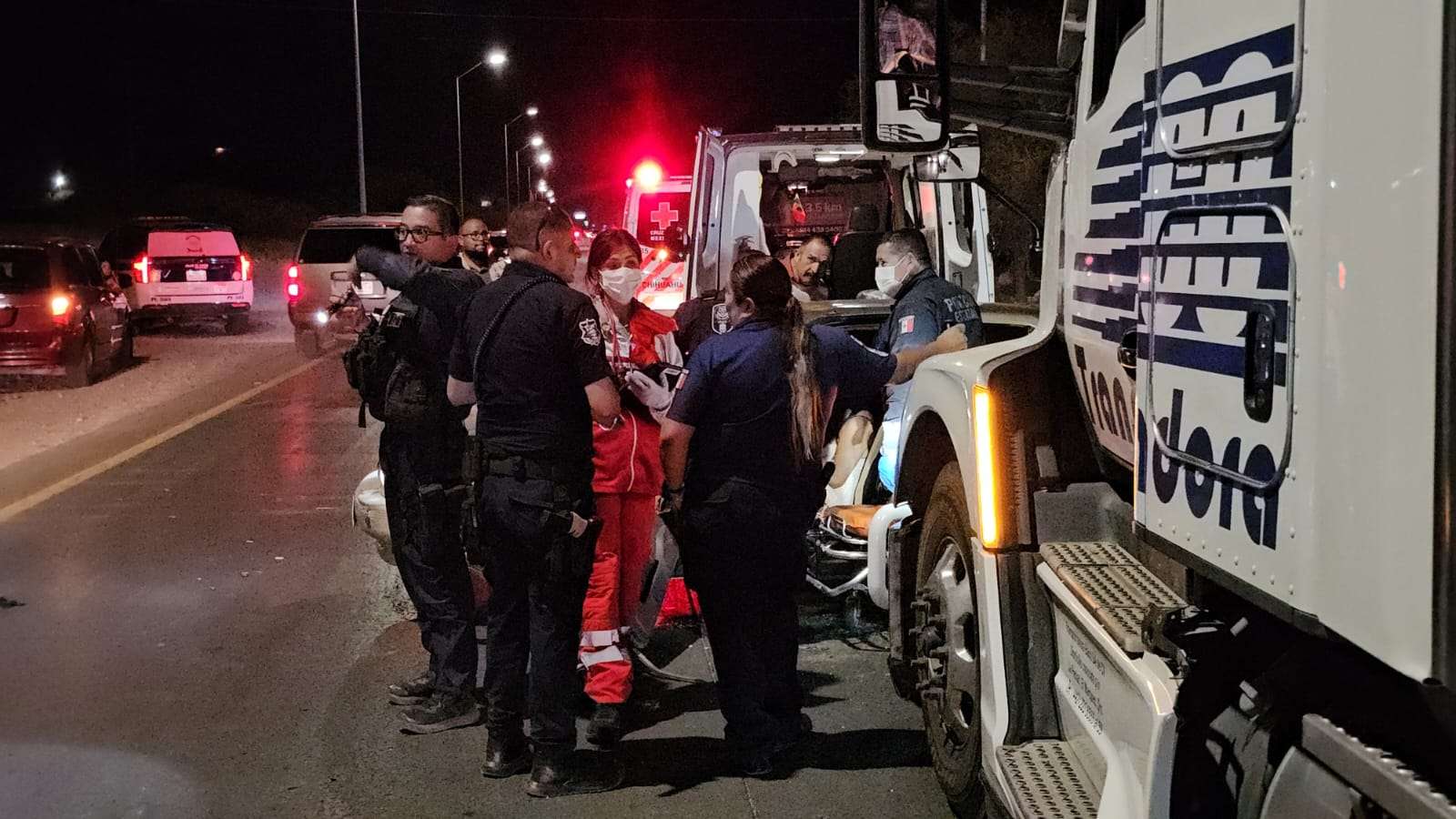 Al lugar arribaron paramédicos de la Policía Estatal y de la Cruz Roja Mexicana para brindar los primeros auxilios. Sin embargo, los rescatistas informaron que la mujer se mostró intransigente y se negó en repetidas ocasiones a descender del vehículo para recibir atención médica.