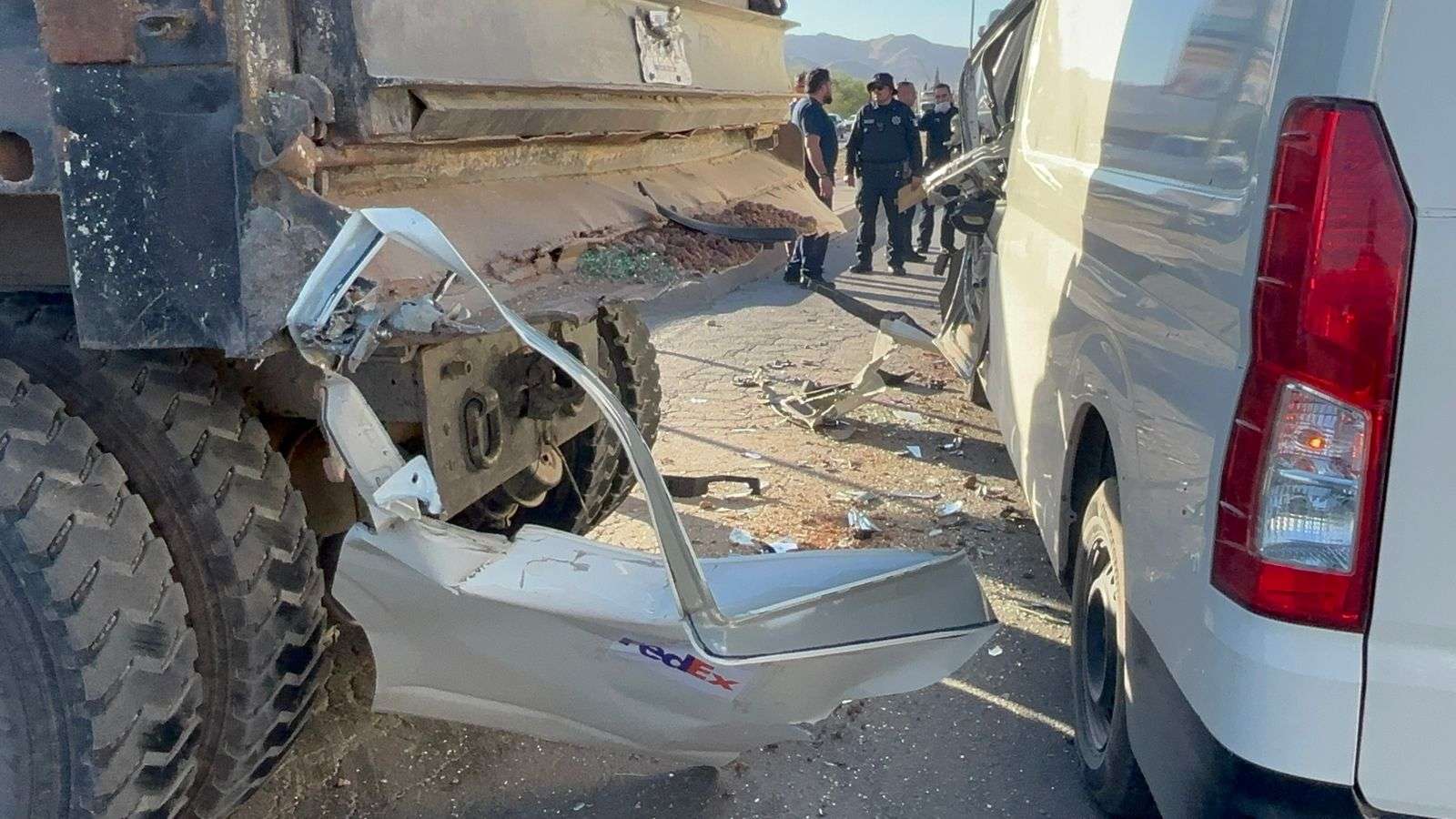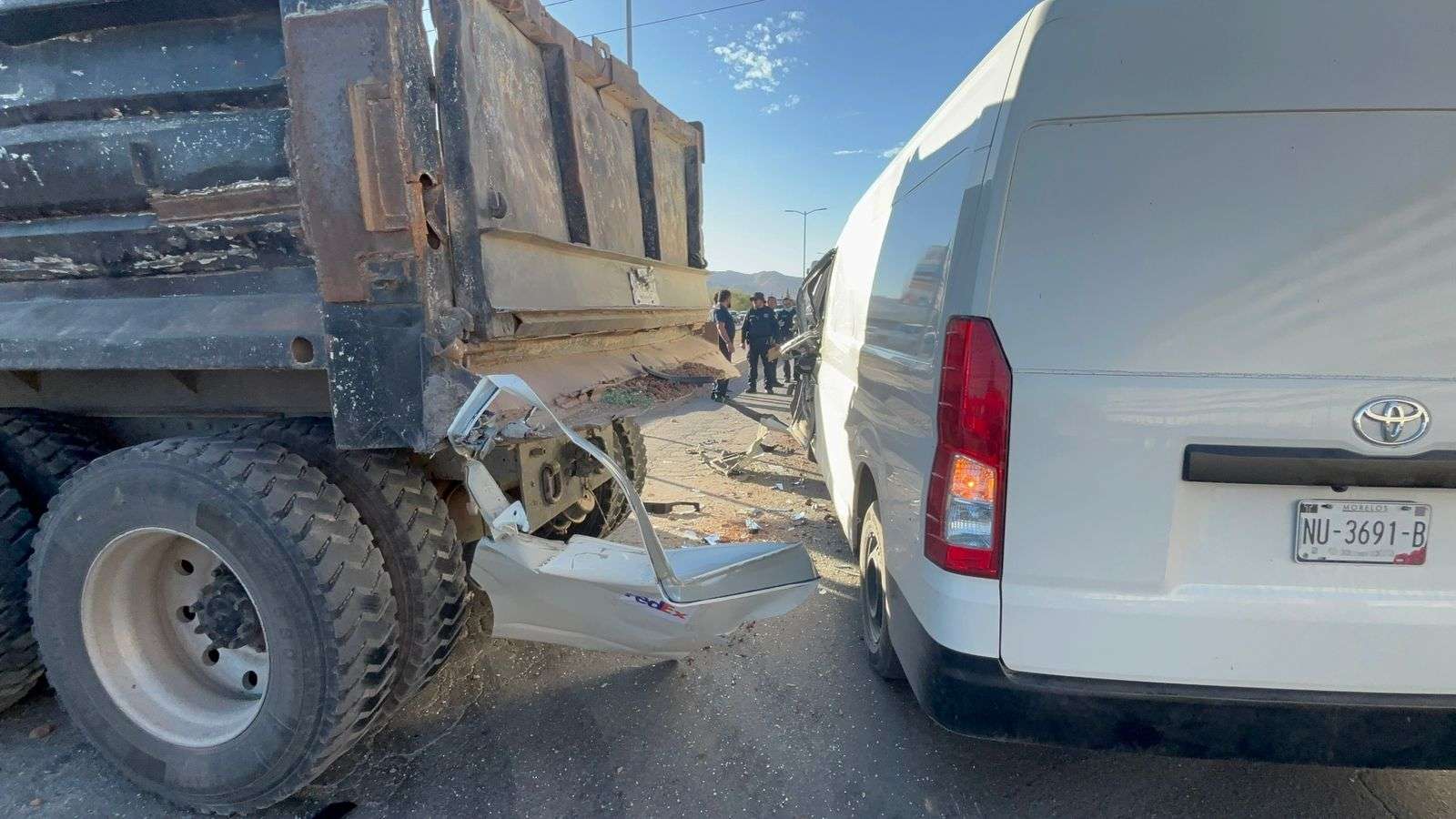 Chihuahua, Chih.- Un hombre de 35 años resultó con lesiones de consideración luego de que un camión de carga le cortara la circulación a una camioneta tipo Van Mazda de Fedex, provocando un fuerte accidente vial.