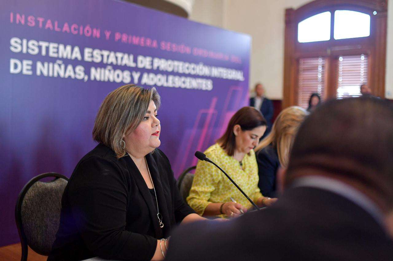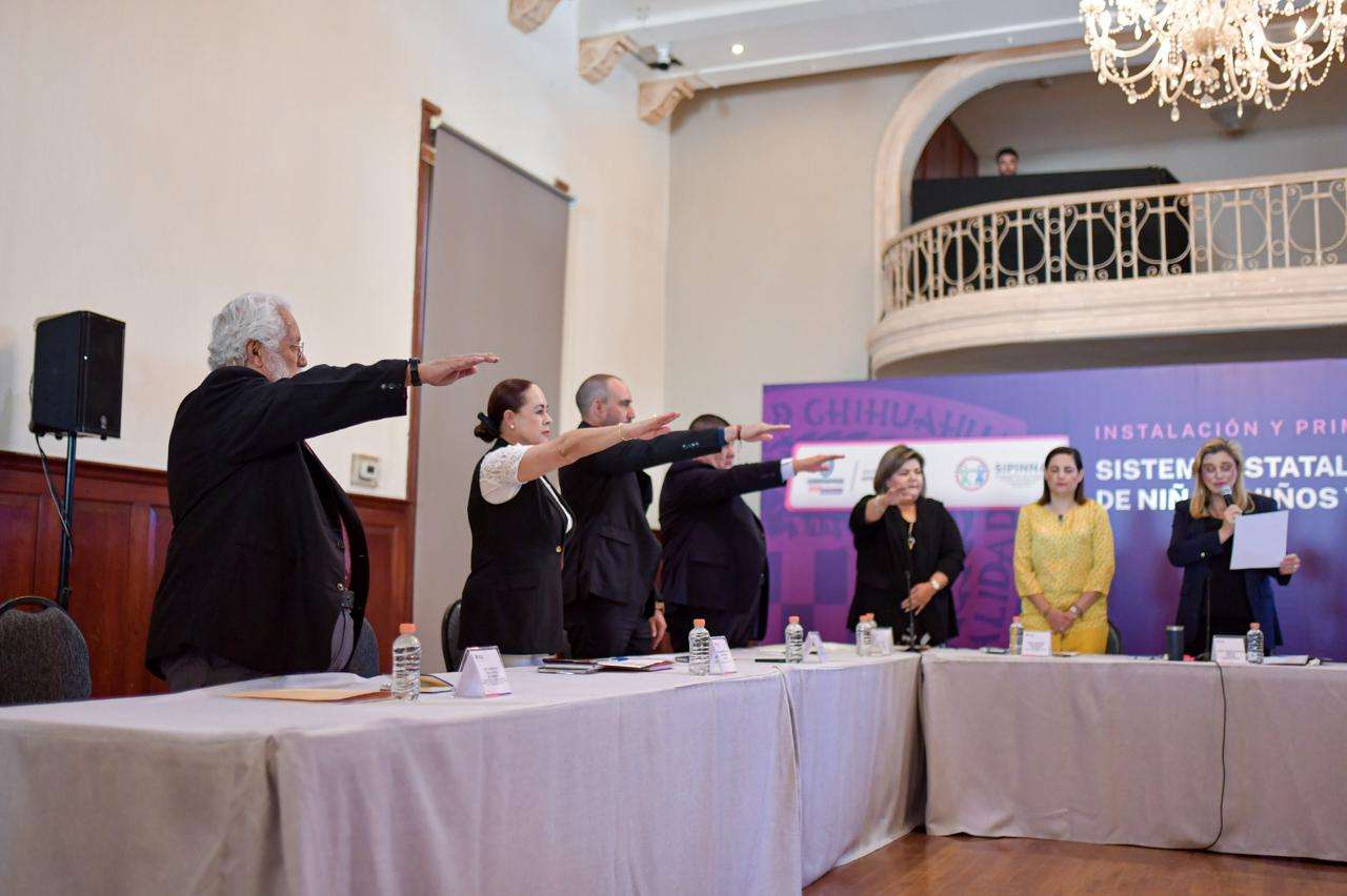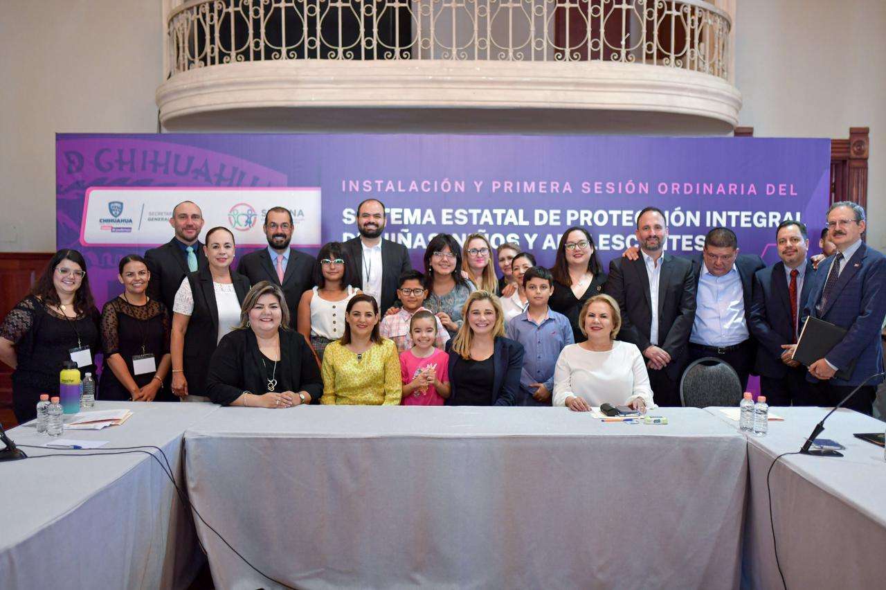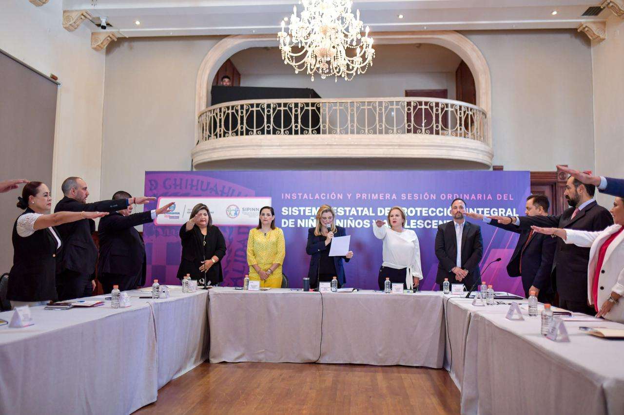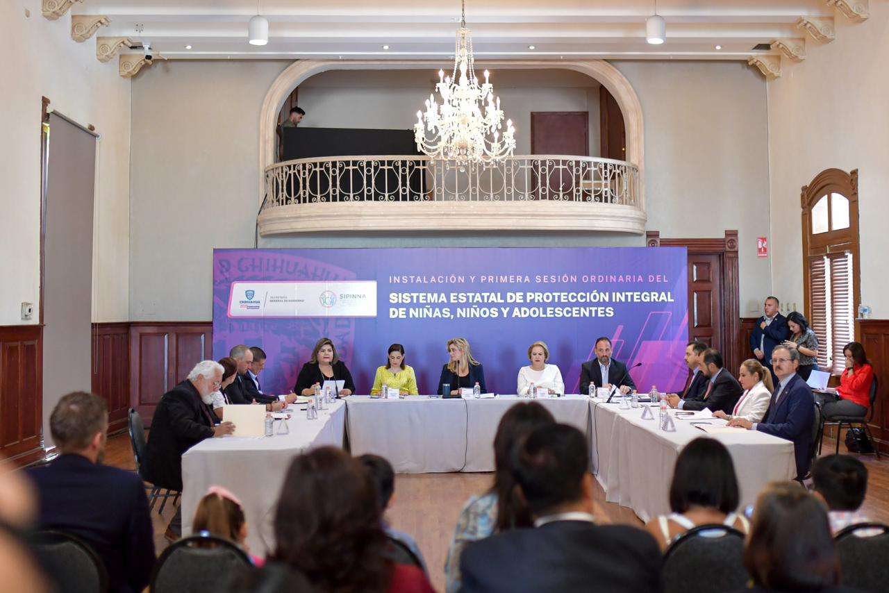 Chihuahua, Chih.- La gobernadora del Estado, Maru Campos, encabezó la instalación y 1ª Sesión Ordinaria del Sistema Estatal de Protección Integral de Niñas, Niños y Adolescentes (Sipinna), en acto efectuado en el Salón “25 de Marzo” de Palacio de Gobierno.