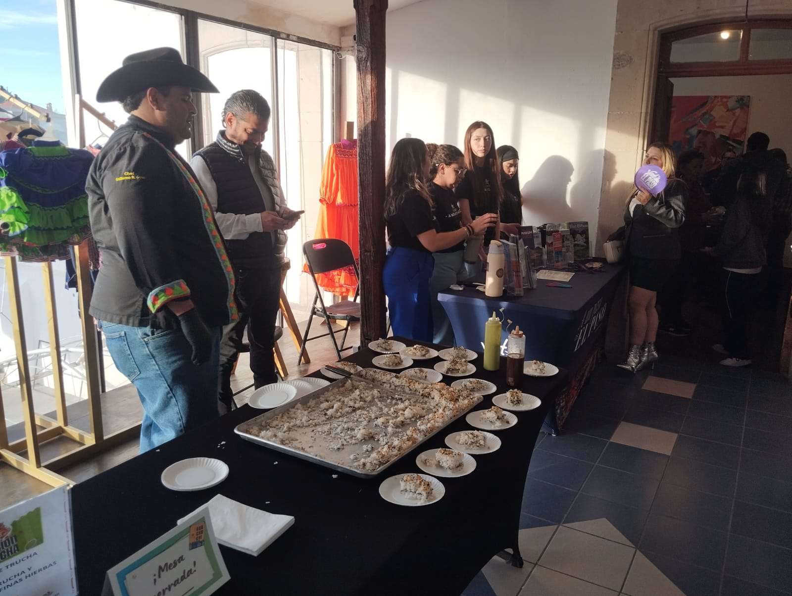 Para la muestra gastronómica, diversos chefs prepararon una variedad de platillos a base de trucha, entre los que destacaron hamburguesa de trucha, paté, sushi, ensaladas, ceviches y la tradicional trucha frita.