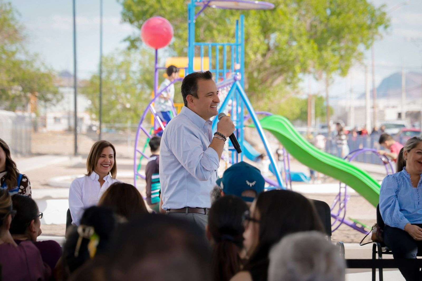 Chihuahua.- El alcalde Marco Bonilla, inauguró el Parque la Ribereña ubicado en la colonia Jardines de Sacramento, el cual fue construido gracias al Presupuesto Participativo y viene a brindar un espacio de encuentro, comodidad y de recreación en la zona para beneficio de cientos de familias.