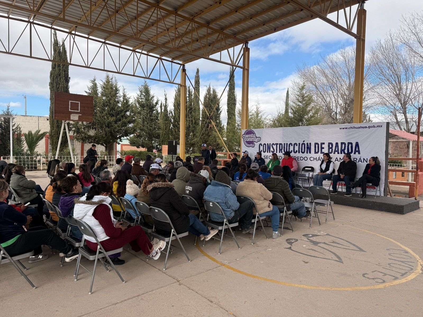 Villa Matamoros, Chih.- La Secretaría de Educación y Deporte (SEyD) y el Ayuntamiento de Matamoros, inauguraron la barda perimetral de la Secundaria Federal Alfredo Chávez Amparán, la cual beneficiará de manera directa a 188 estudiantes.