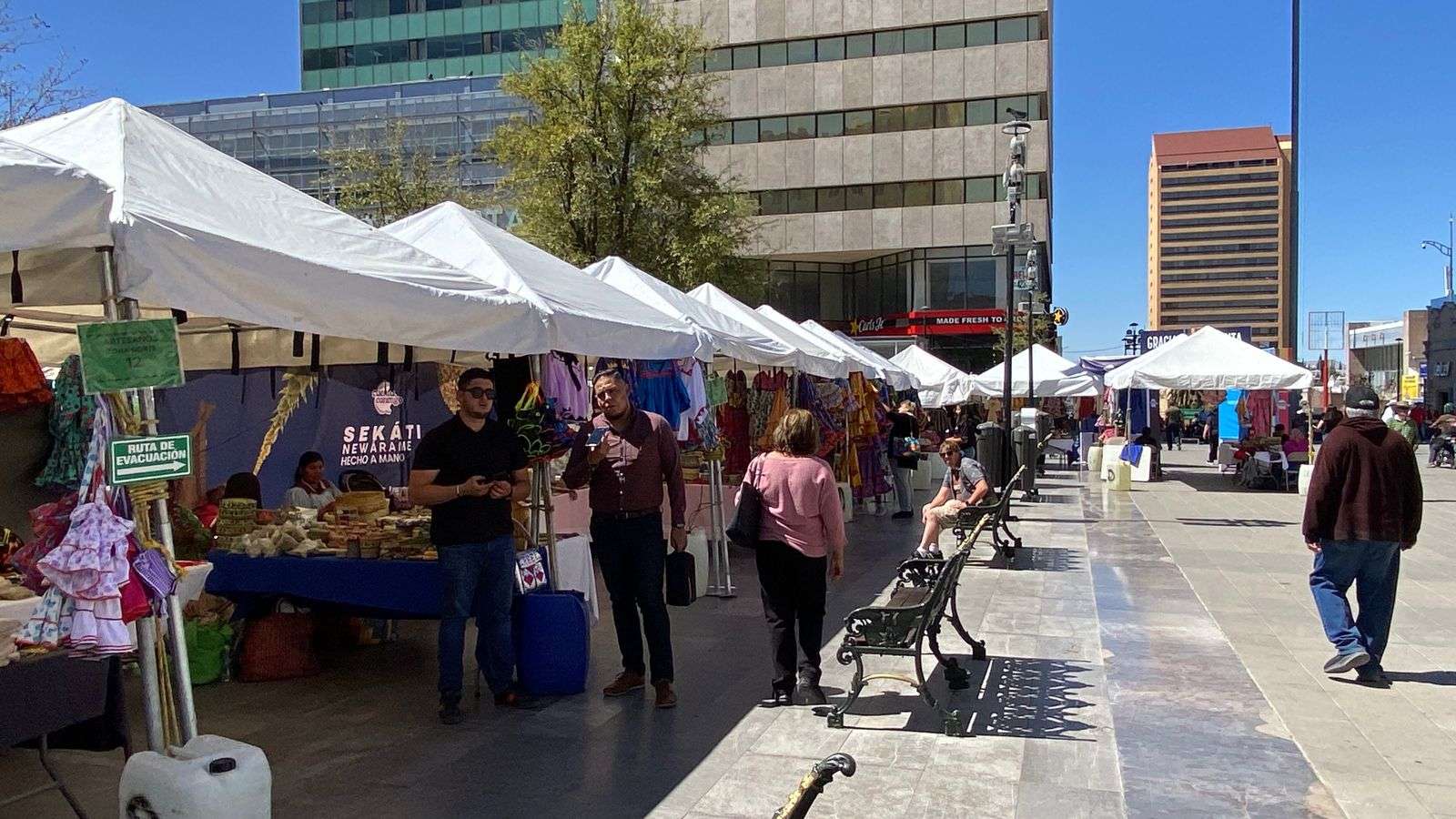 Chihuahua.- En la Plaza de Armas se está llevando a cabo el festival artesanal Sekáti Newárame, que significa Hecho a Mano donde los pueblos Rarámuri, Mazahua, Tepehuan, Otomí, N'dee y pueblos originarios de Ecuador, se encuentran ofreciendo sus artesanías.