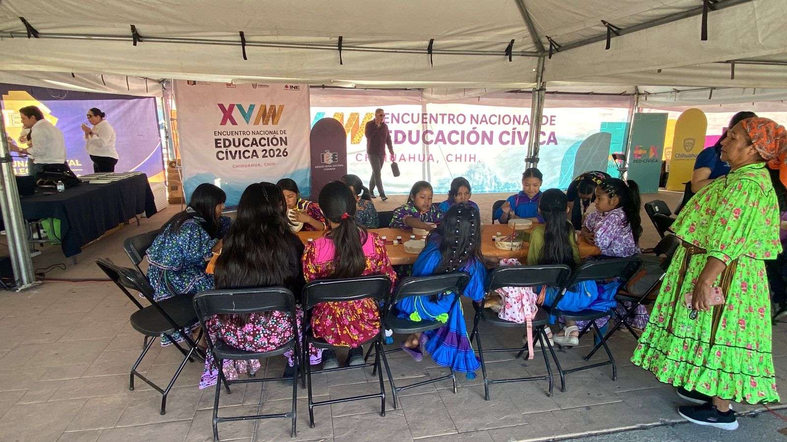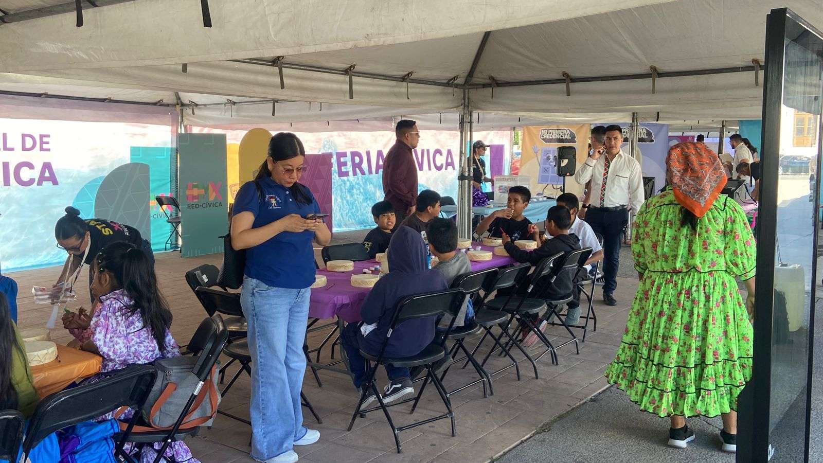 Chihuahua.- En la Plaza del Ángel se realizó la Feria Cívica como parte del Encuentro Nacional de Educación Cívica 2026, con el objetivo de promover la democracia y los valores democráticos como el respeto, la legalidad, la tolerancia y la inclusión.