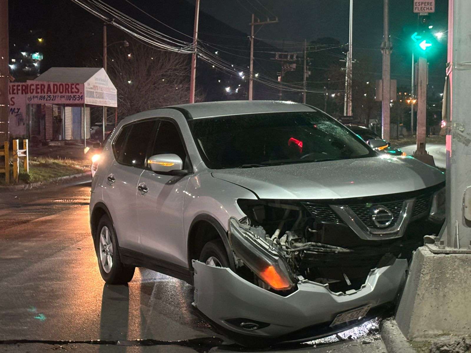 Chihuahua. - El conductor de una camioneta Nissan Rogue perdió el control del volante y se impactó contra un poste ubicado en el cruce de Cumbres de Robinson y el periférico Lombardo Toledano.