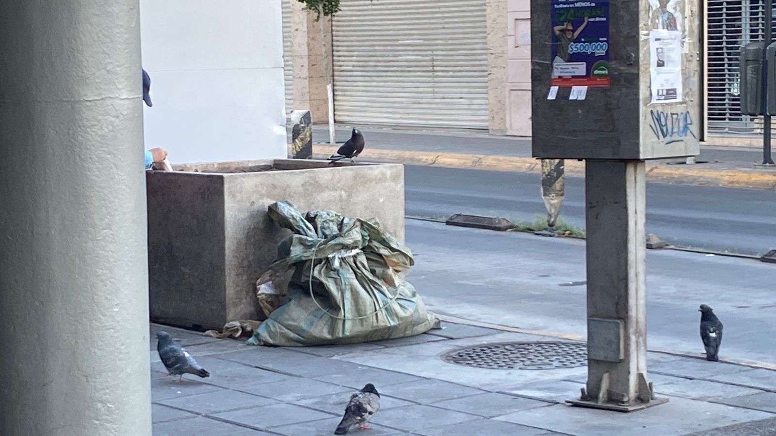 Chihuahua.- La avenida Juárez, en el primer cuadro de la ciudad, amaneció llena de basura, generando contaminación visual para los peatones que diariamente transitan por la zona, los residuos se pudieron observar a lo largo de la avenida Juárez, desde la calle 25 hasta la calle Carranza, donde las bolsas de basura eran visibles.