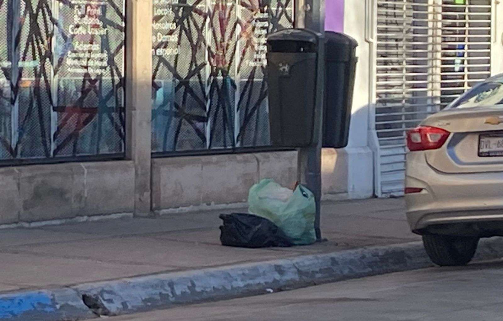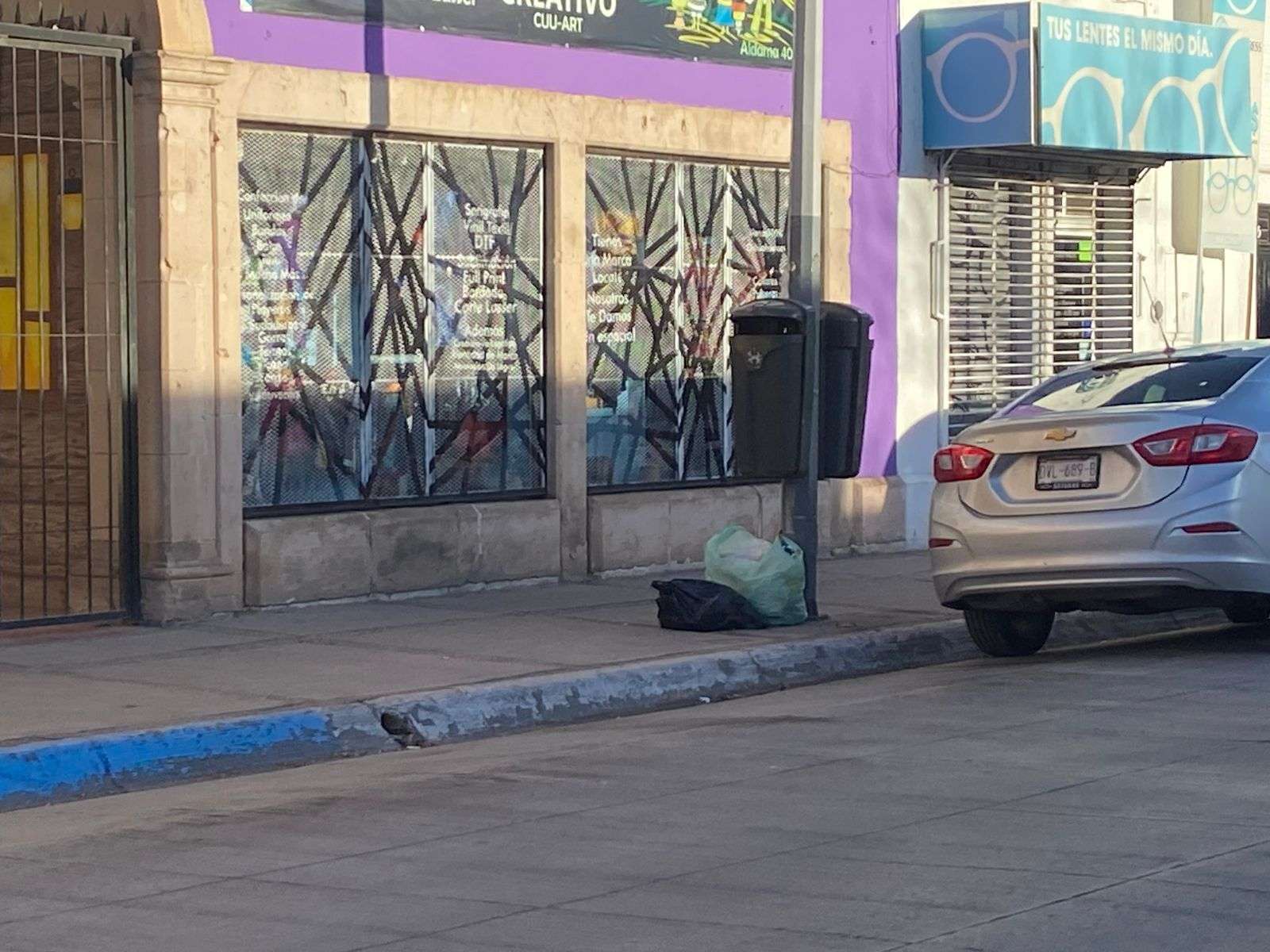 Los residuos se encontraron sobre avenida Juárez y Quinta, donde la basura estaba esparcida sobre la banqueta, así como en Aldama y casi Ocampo, donde se localizaron varias bolsas de desechos.