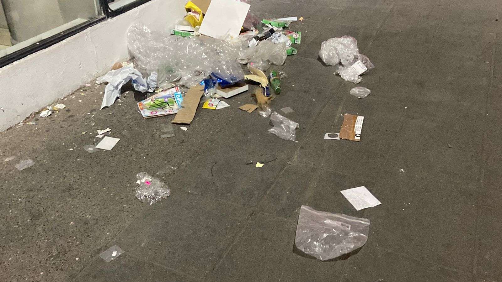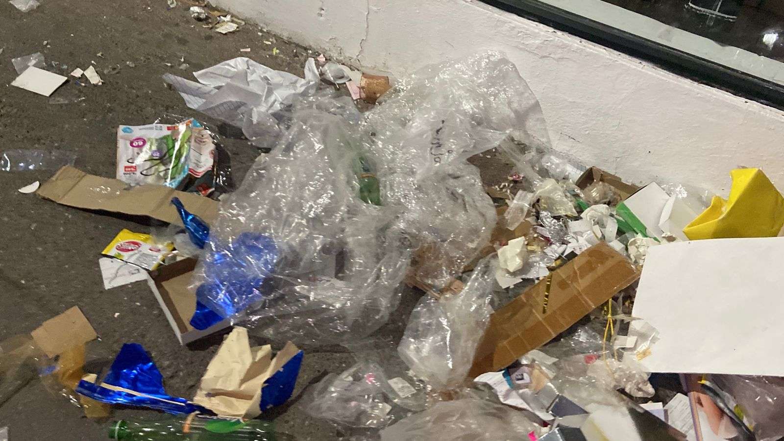 Los residuos se observaron principalmente en la calle Vicente Guerrero, casi en la avenida Juárez, justo detrás de Palacio de Gobierno, envoltorios de frituras, catálogos, plásticos y cartones adornaban la vía pública, esparcidos en la banqueta.