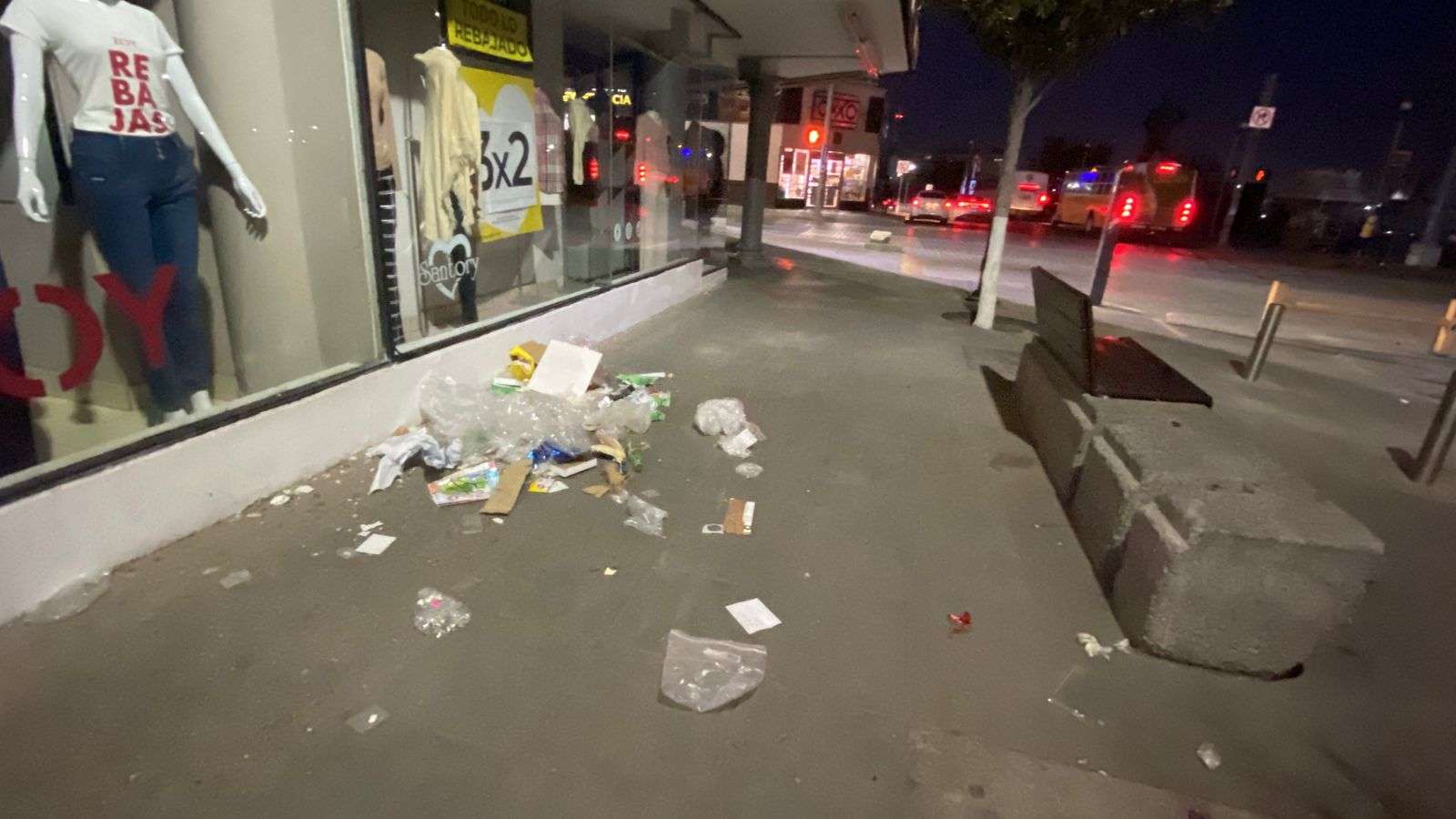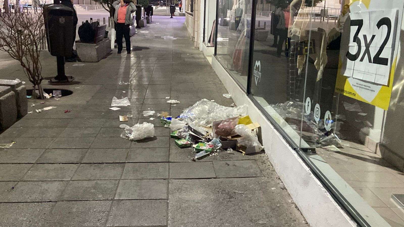 Chihuahua.– Las calles del primer cuadro de la ciudad amanecieron cubiertas de basura, generando una fuerte contaminación visual que incomodó a los peatones que diariamente transitan por la zona.